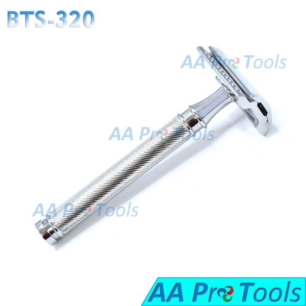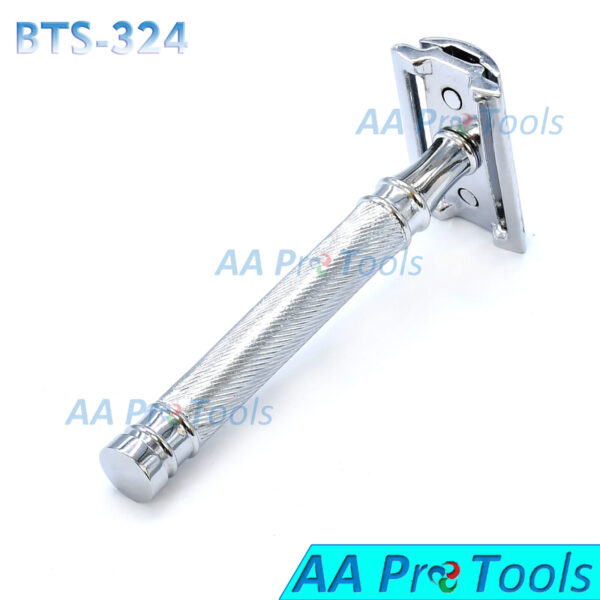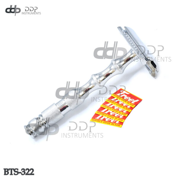 ITEM NAME & DETAILS : Double Edges Safety Razor With Long Wavy Handle Stainless Steel  Item Code: BTS-322 Set Detail….