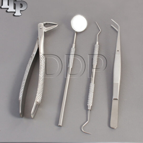 SET OF 4 PCS ORAL DENTAL SURGERY EXTRACTION KIT WITH EXTRACTING FORCEPS #89 This Set Included: 1 DENTAL MIRROR