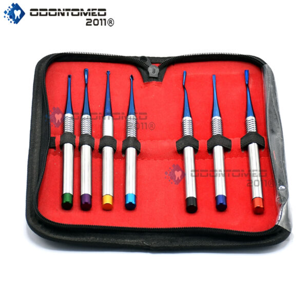 PRODUCT NAME: ODM Dental Pdl Root Elevators Set Of 7 Precise Periotomes Tips Titanium Lab QUANTITY: 7 PIECES Brand New.