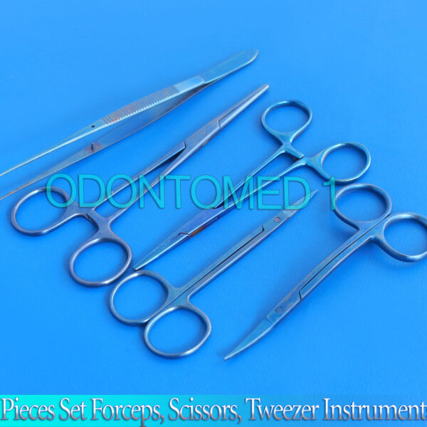 5 Pieces Forceps & Scissors+ Tweezer Titanium Surgical Instruments Item Code: T.T-124 This Set Included: Kelly Forceps 5.5.” Str
