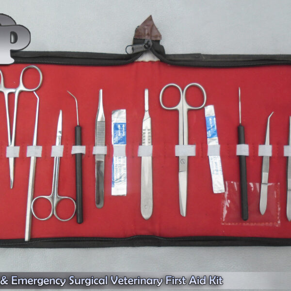 ITEM NAME & DETAILS : Survival & Emergency Surgical Veterinary First Aid Kit With Case SET Details:.. 1 Iris Scissor