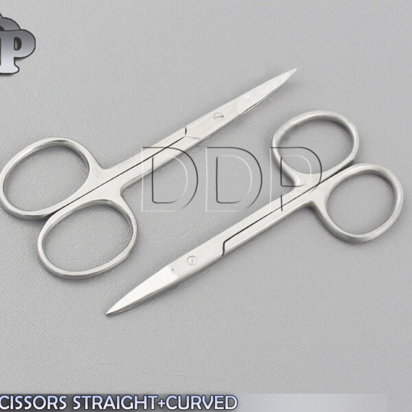 ITEM NAME & DETAILS : 2 Assorted Fine Point Iris Scissors 3.5” Straight + Curved Set Detail……. 1 O.r Grade