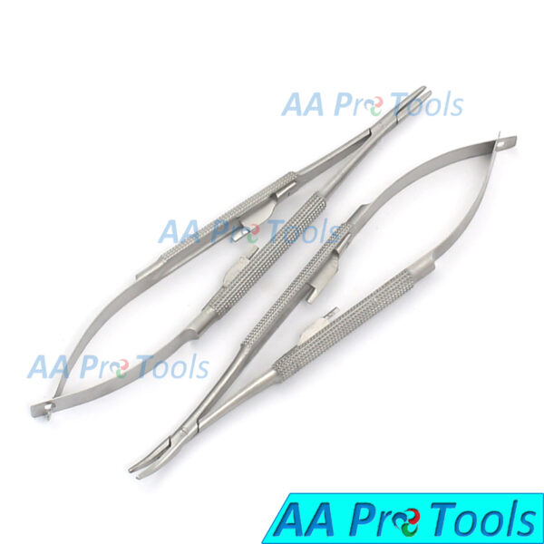 AA Pro: 2 Round Castroviejo Micro Surgery Needle Holder Straight + curved 5.5″ W/Lock