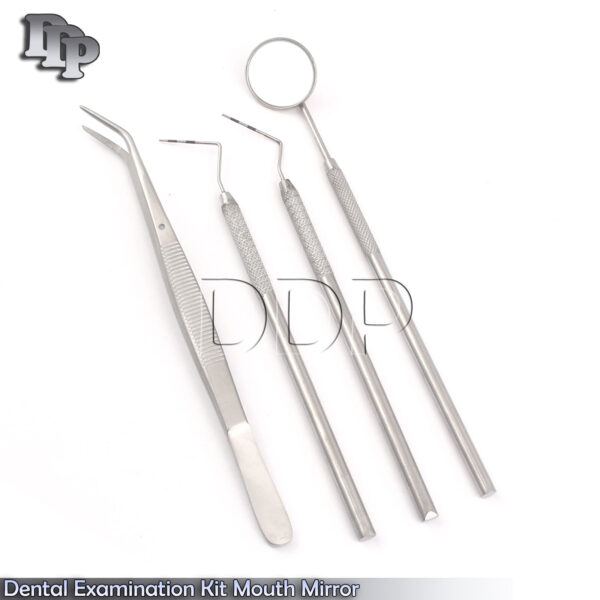 ITEM NAME & DETAILS : Pack Of 4 Pieces Dental Examination Kit Mouth Mirror CP12, CP 11 and College Tweezers