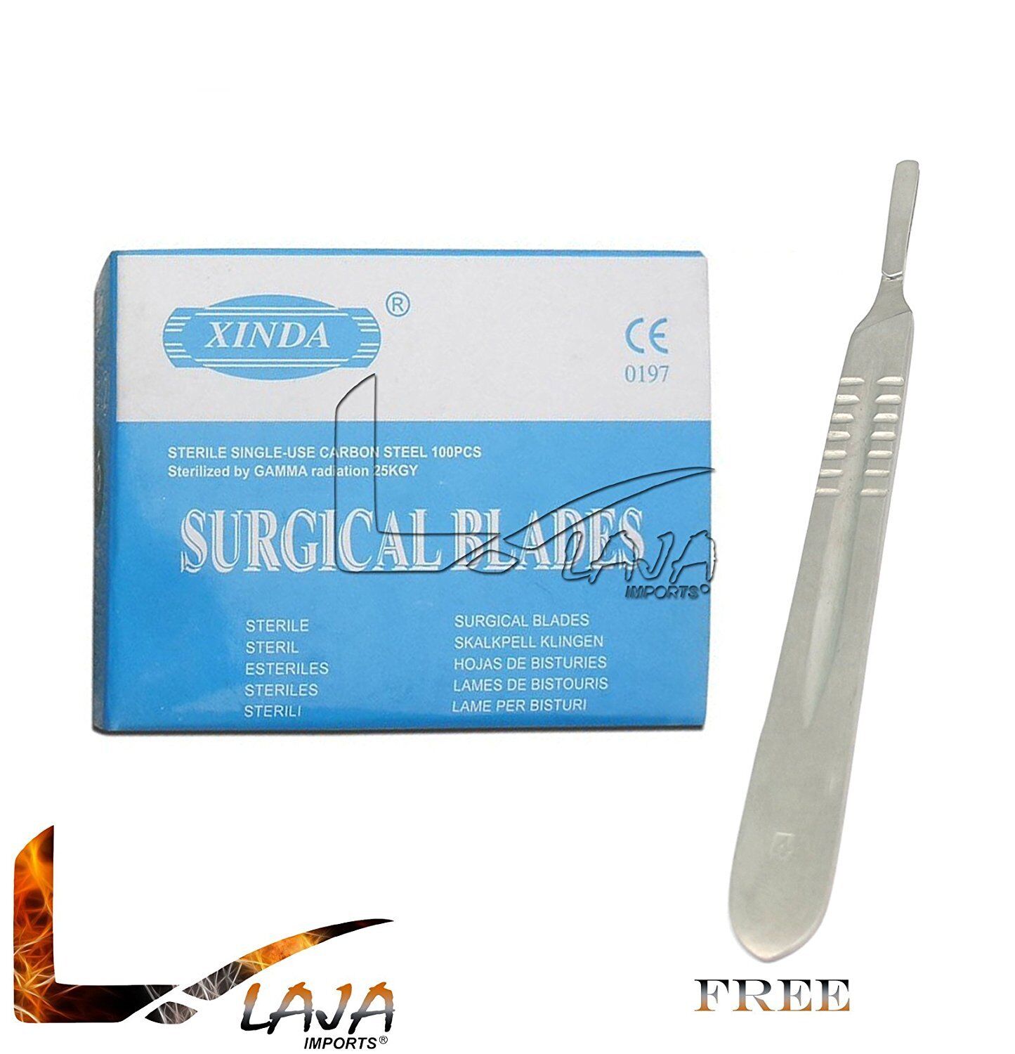 100 Pcs Scalpel Blades #23 Surgical Dental ENT Instruments with Free #4 Handle
