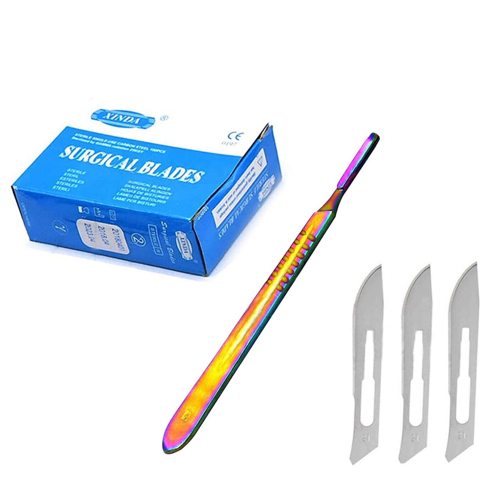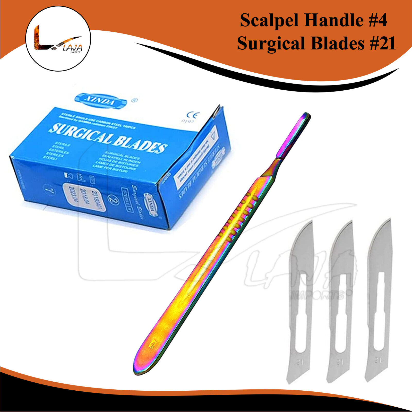 100 Sterile Surgical Blades #21 with Scalpel Handle #4 Multi