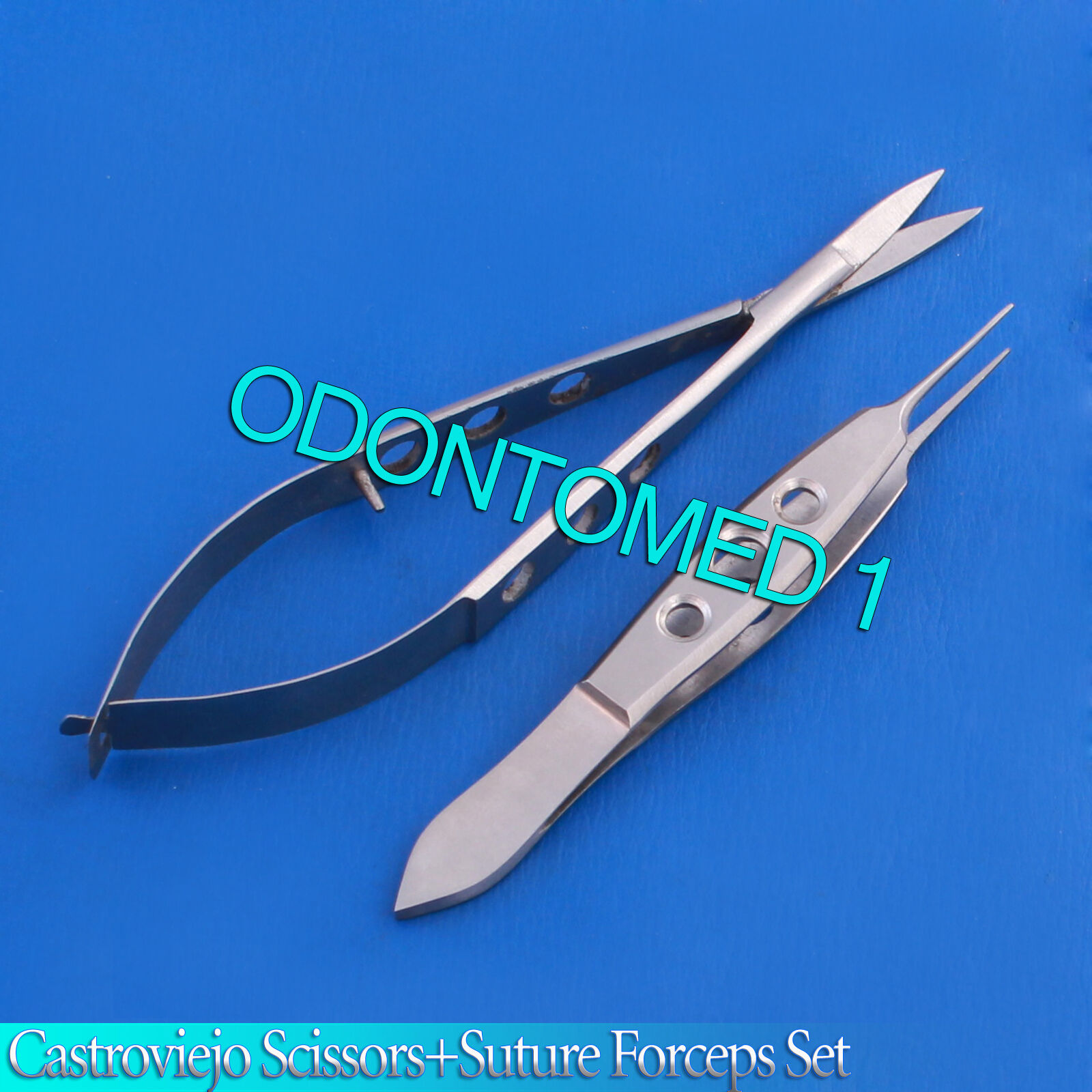 2 PC CASTROVIEJO SCISSORS STRAIT+SUTURE TISSUE FORCEPS