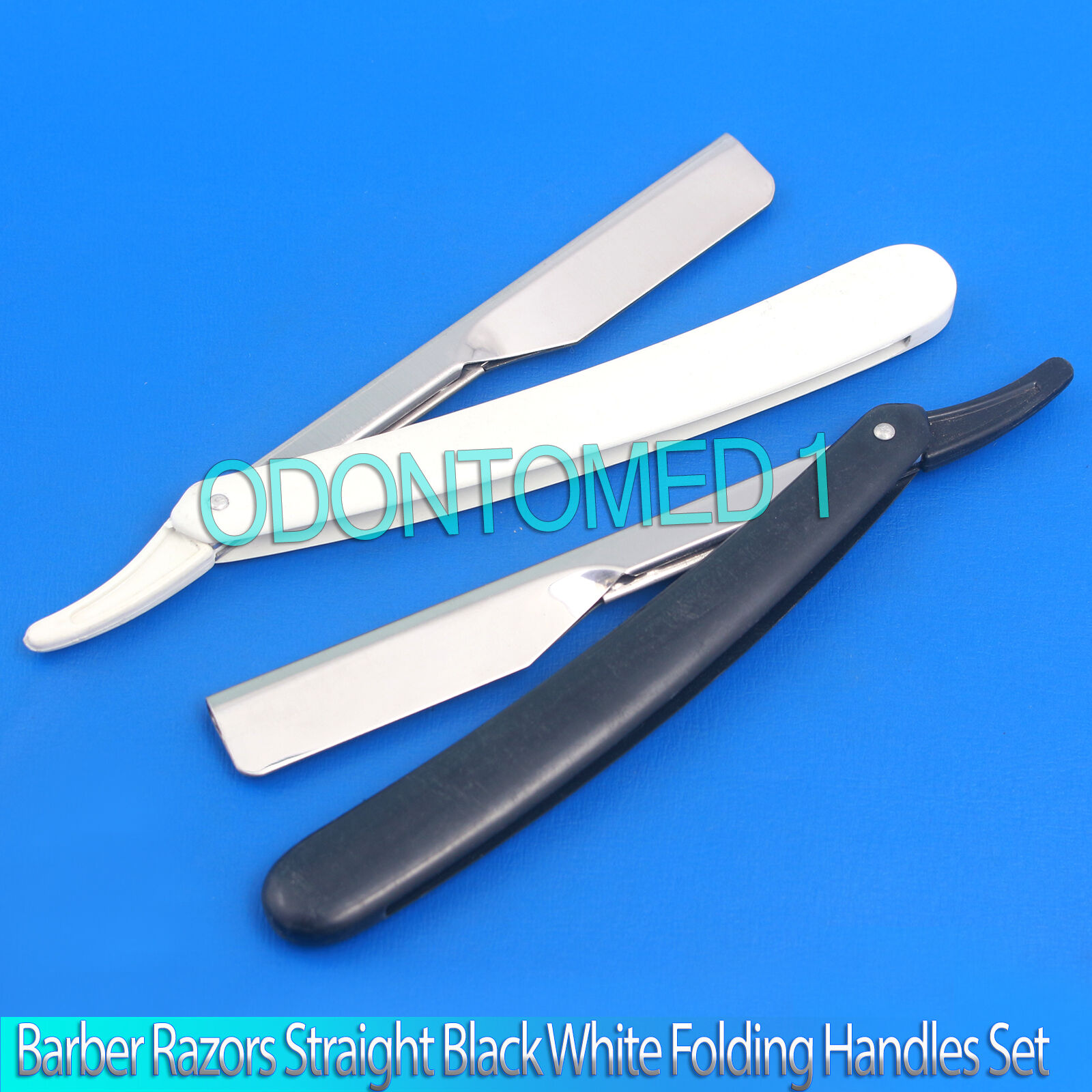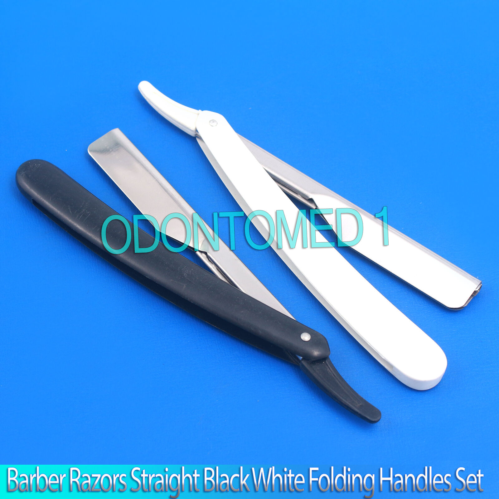 2 Pieces Barber Razors Straight Shaving Steel Edge Black White Folding Handles Set