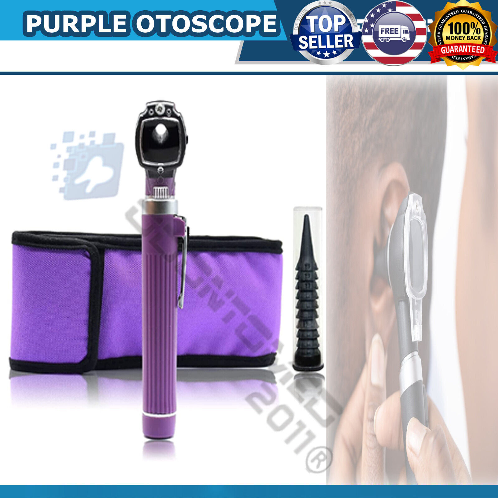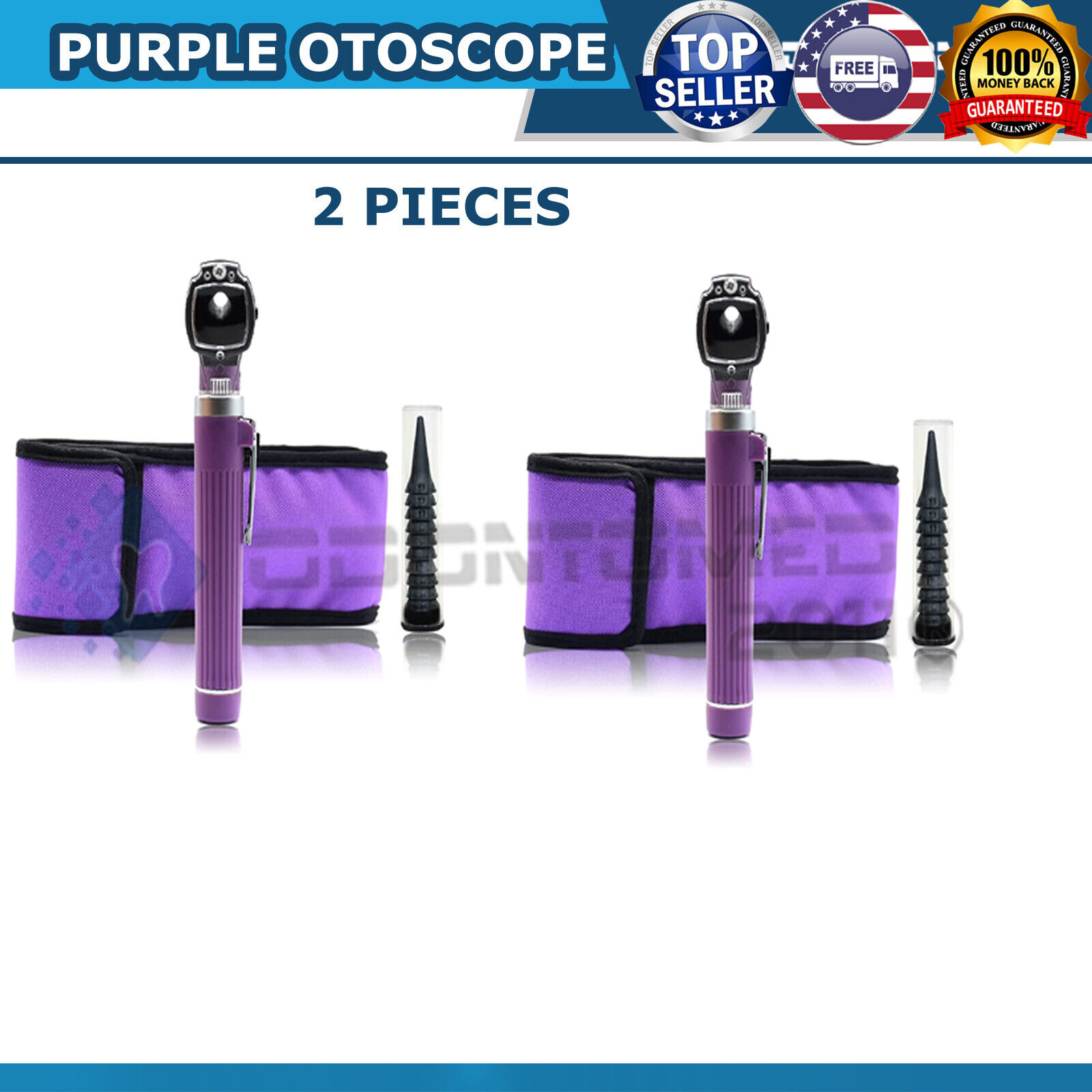 2 PIECES Purple Mini Fiber Optic Medical Otoscope Diagnostic Examination