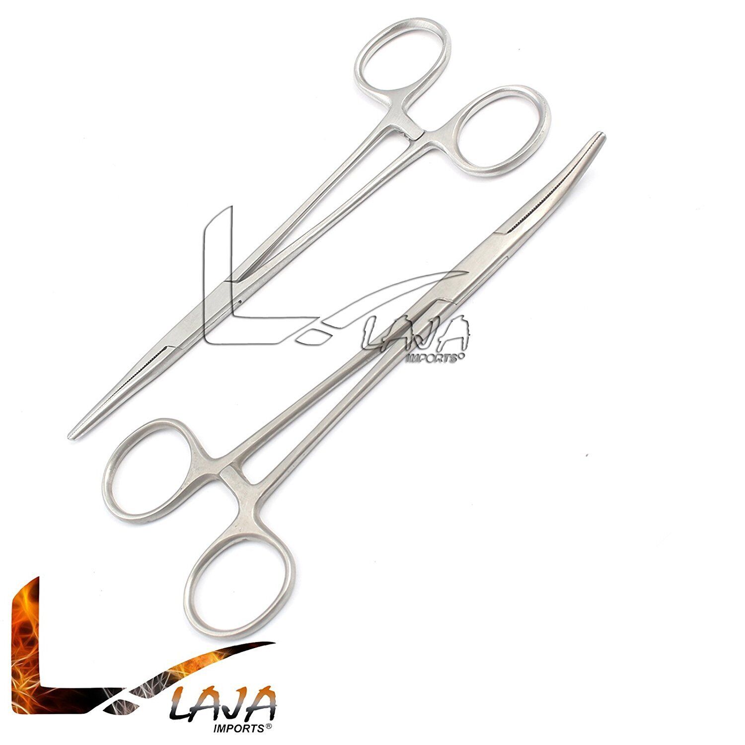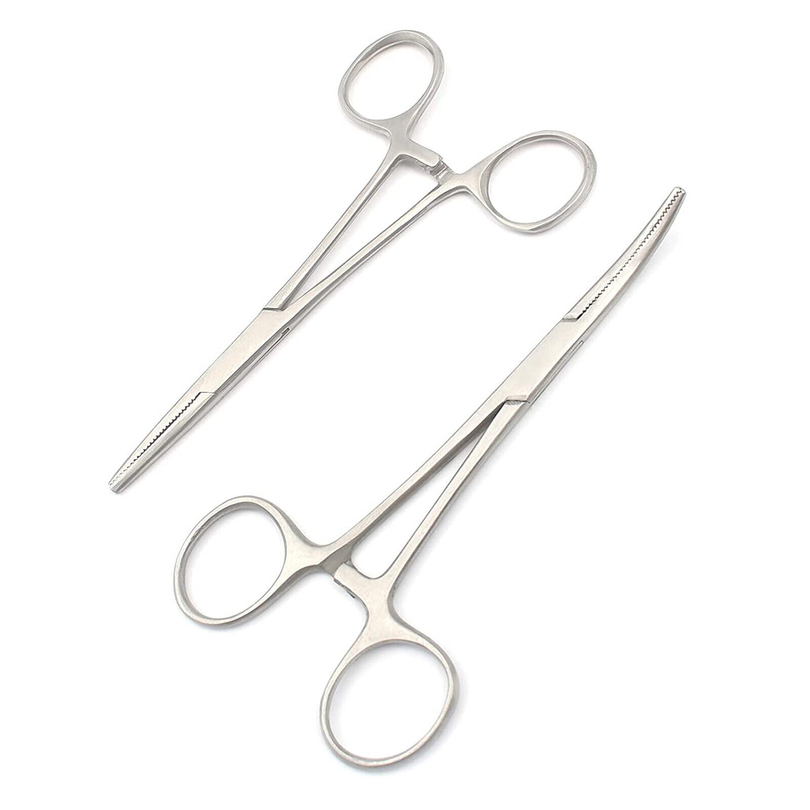 2pc Fishing Set 5" Straight, Curved Hemostat Forceps Locking Clamp Stainless