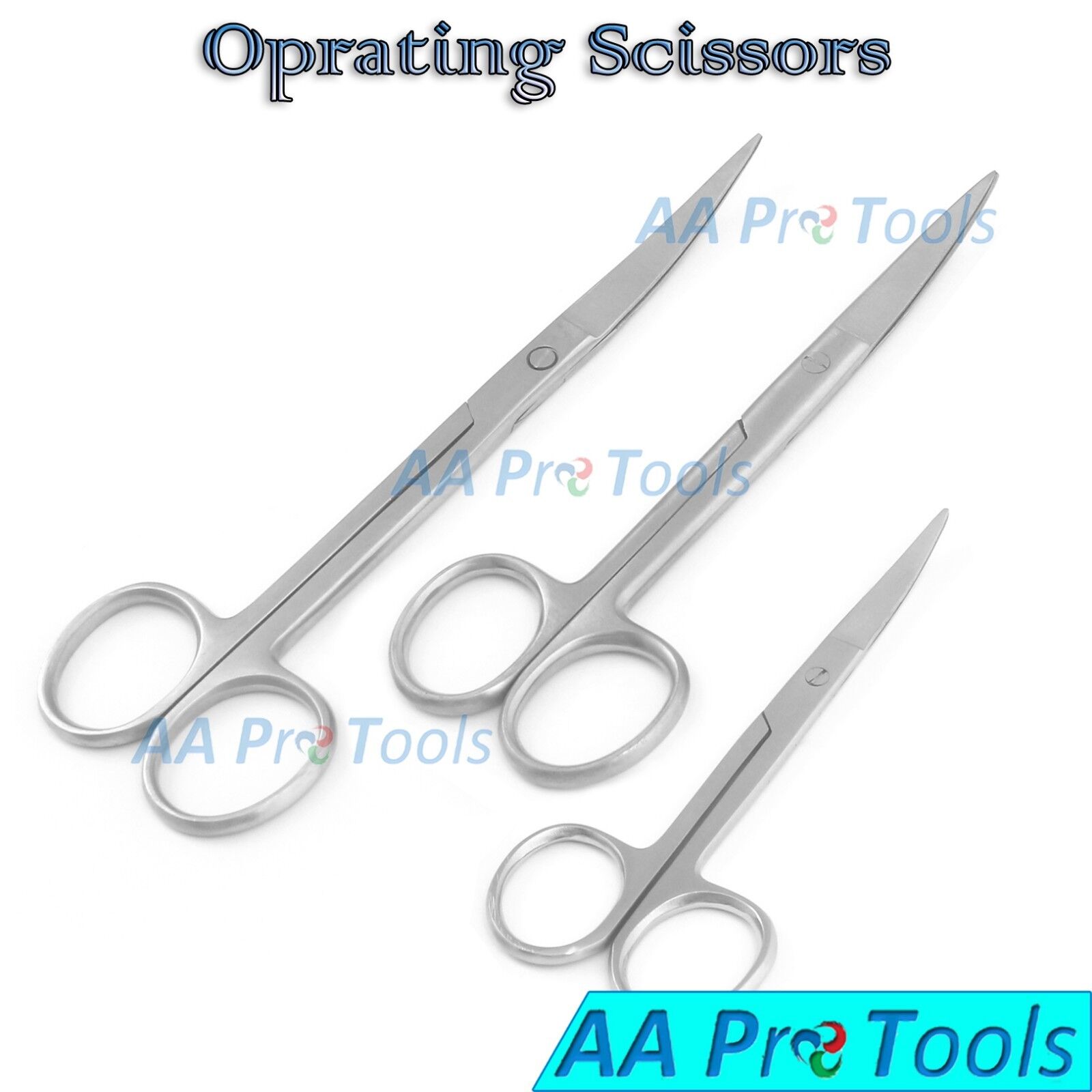 AA Pro: 3 Operating Scissors 4.5″+5.5″+6.5″ Curved Sharp Sharp Surgical Instruments