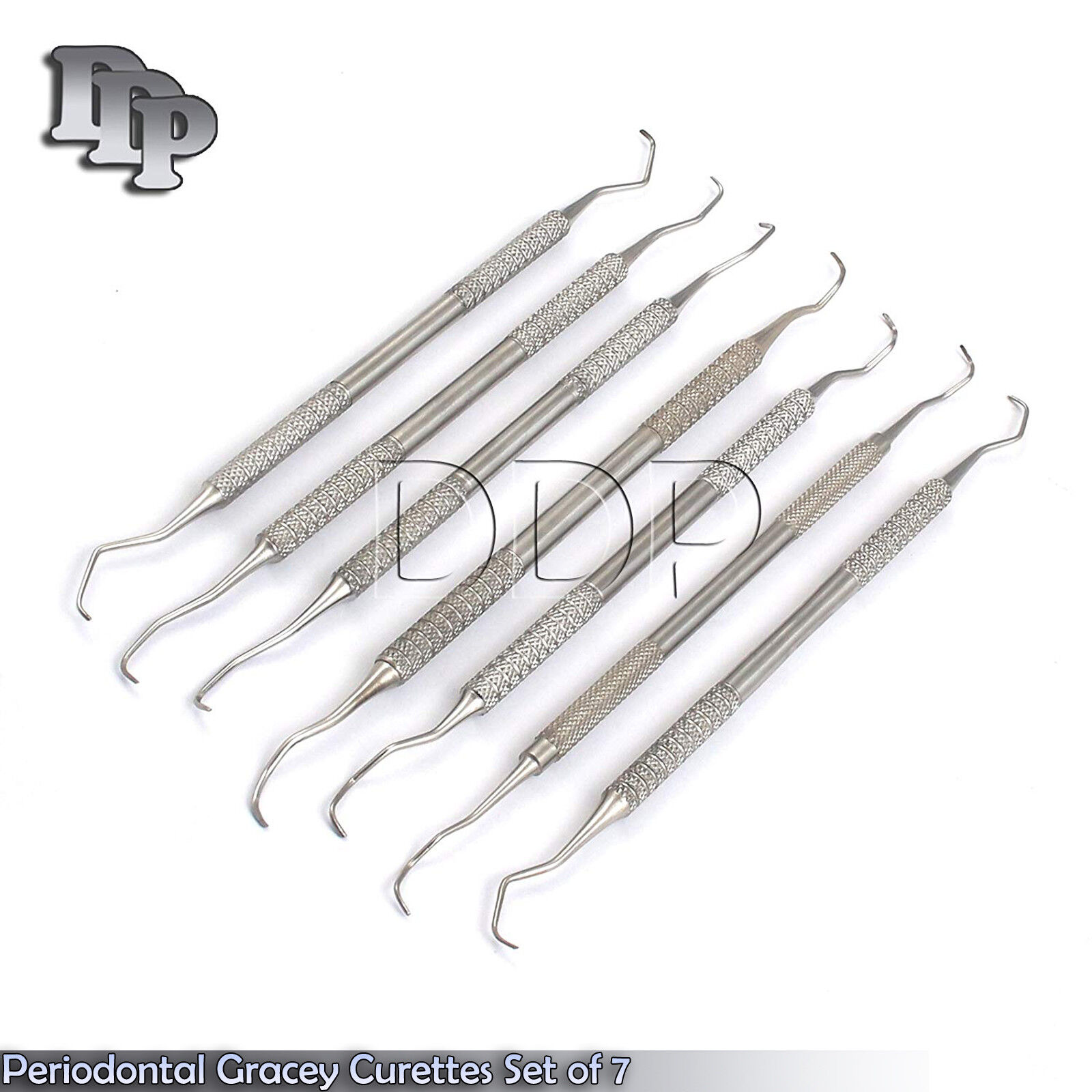 ITEM NAME & DETAILS : Dental Hygienist Periodontal Curettes (Set Of 7) Set includes: G1/2,G3/4,G5/6,G7/8,G9/10,G11/12,G13/14 BRAND NAME : DDP QUALITY