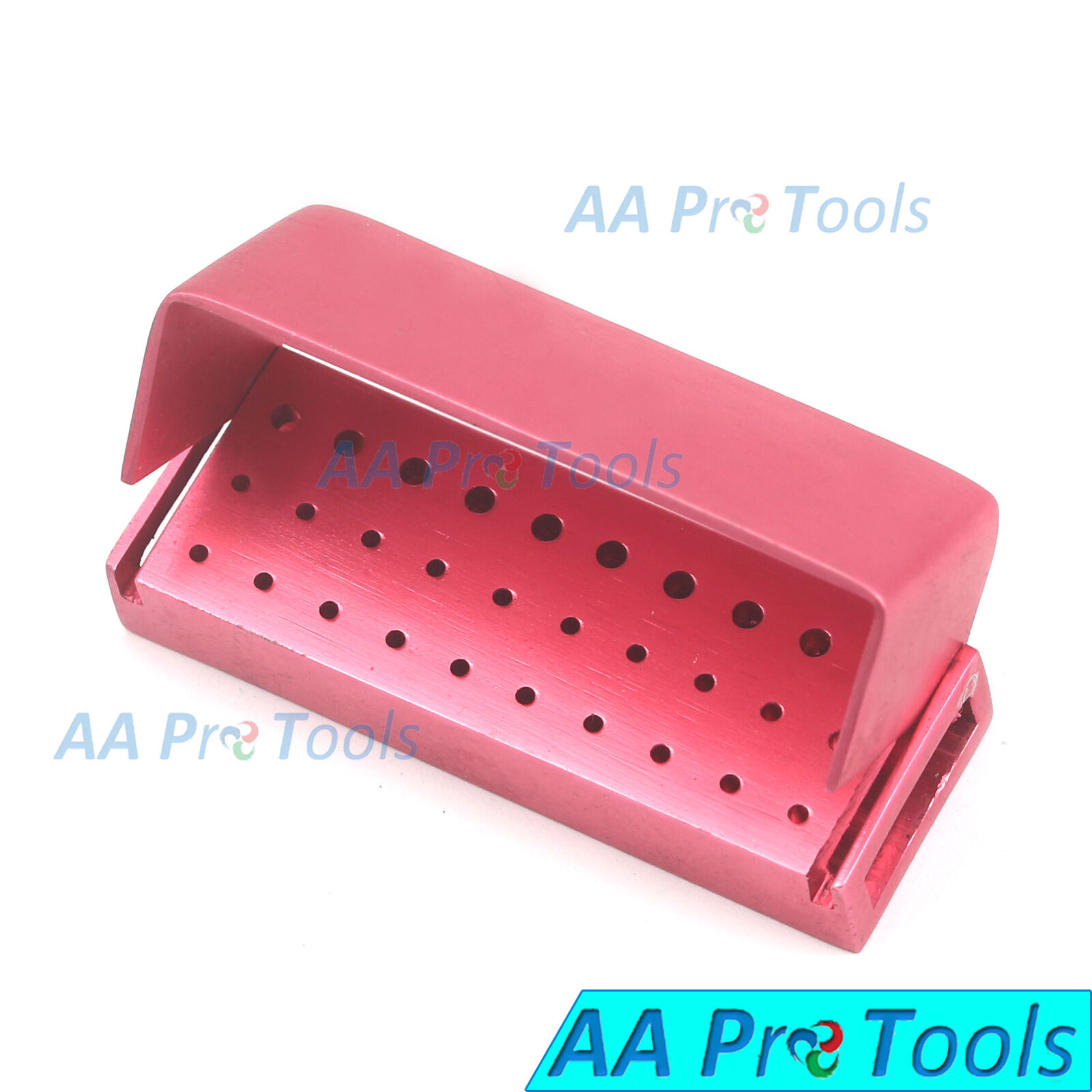 AA Pro: 30 Holes Dental Aluminum Bur Burs Holder Box Autoclave Pink Color DN-2087