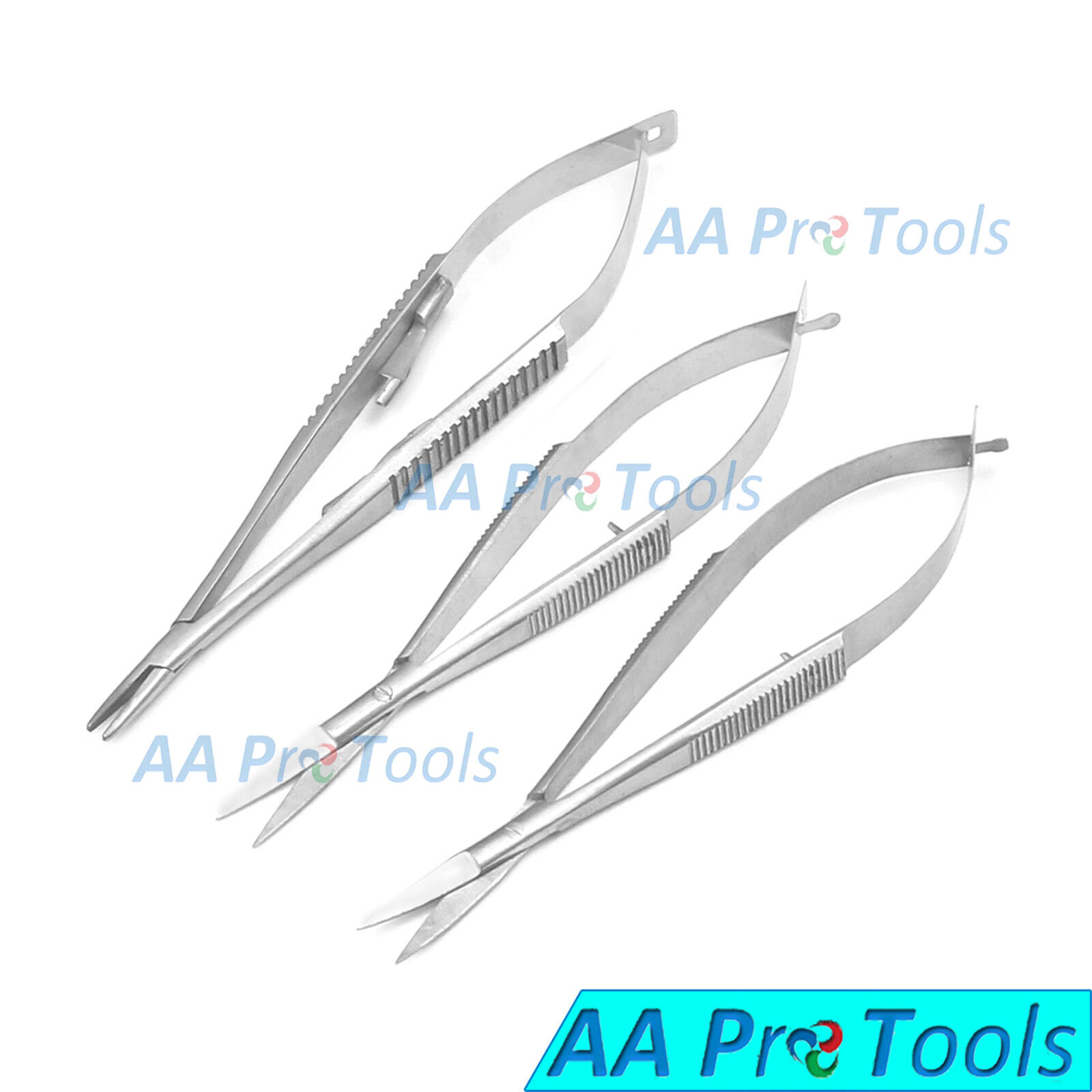 AA Pro: 3pcs Set Castroviejo Scissors STR CVD & Needle Holder Dental Surgical Instrument