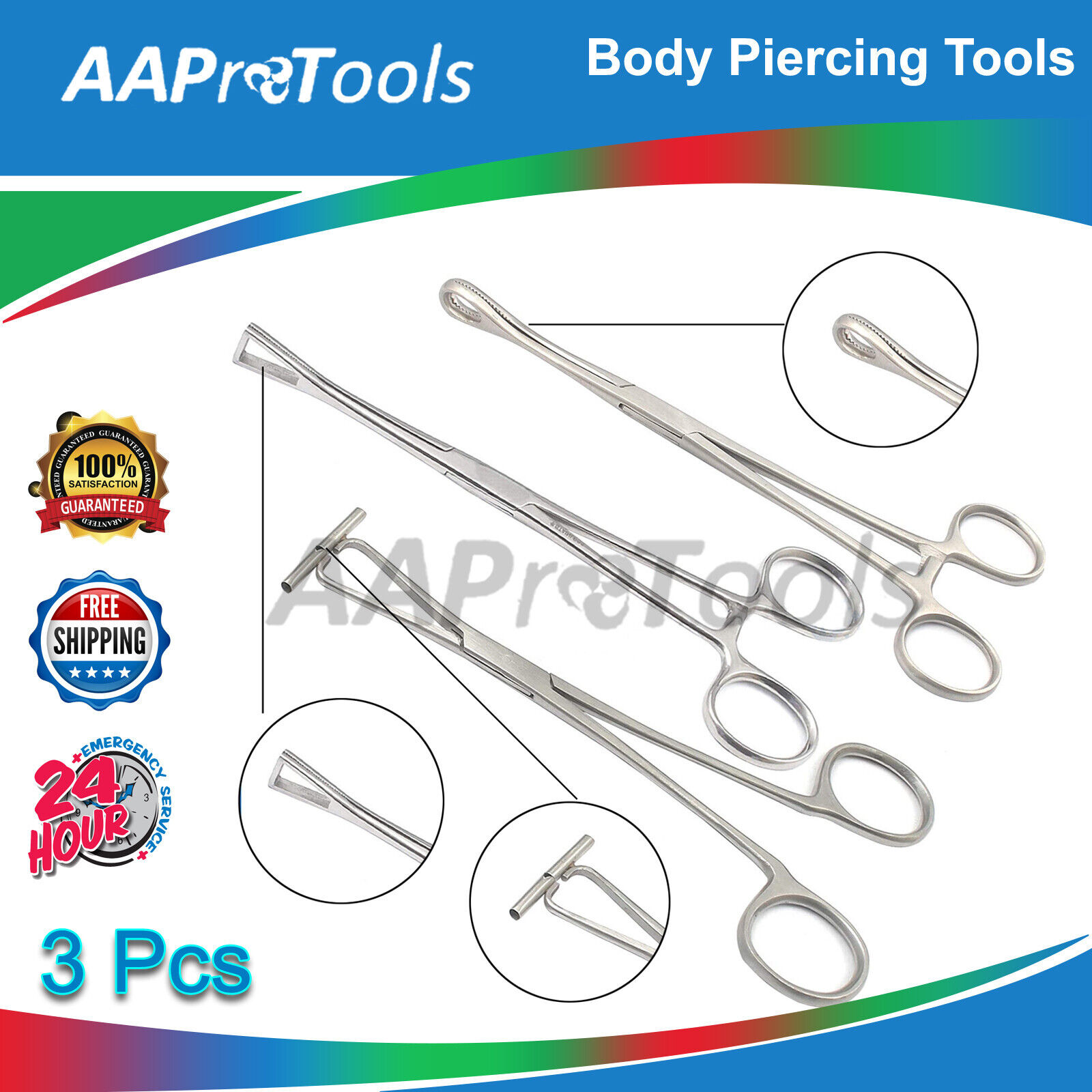 AA Pro: 3X BODY PIERCING TOOLS SEPTUM FORCEPS, PENNINGTON CLAMP SPONGE FORCEPS KIT NEW