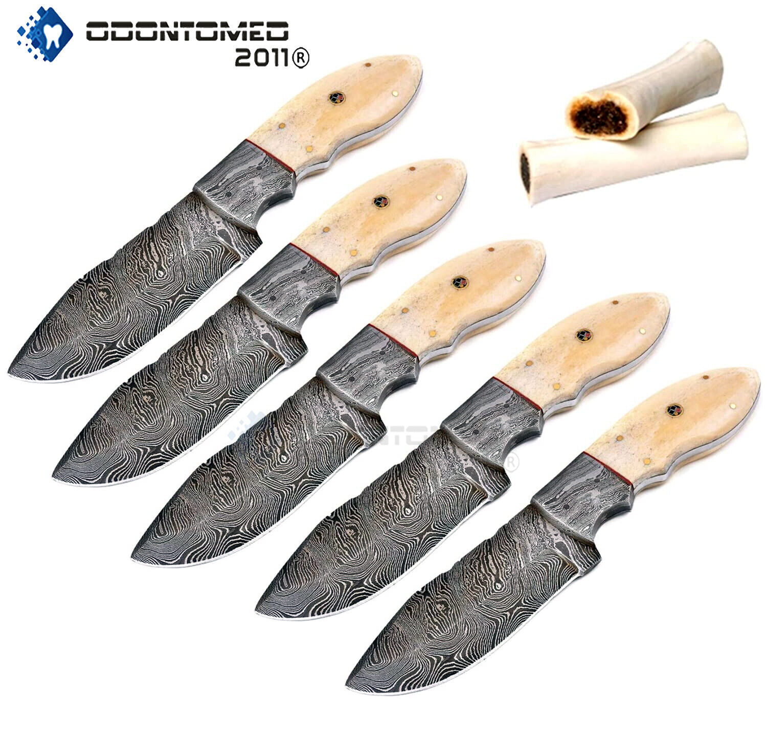 5 Pcs Handmade Damascus Steel Skinner Knife Beautiful White Bone Handle LI-93