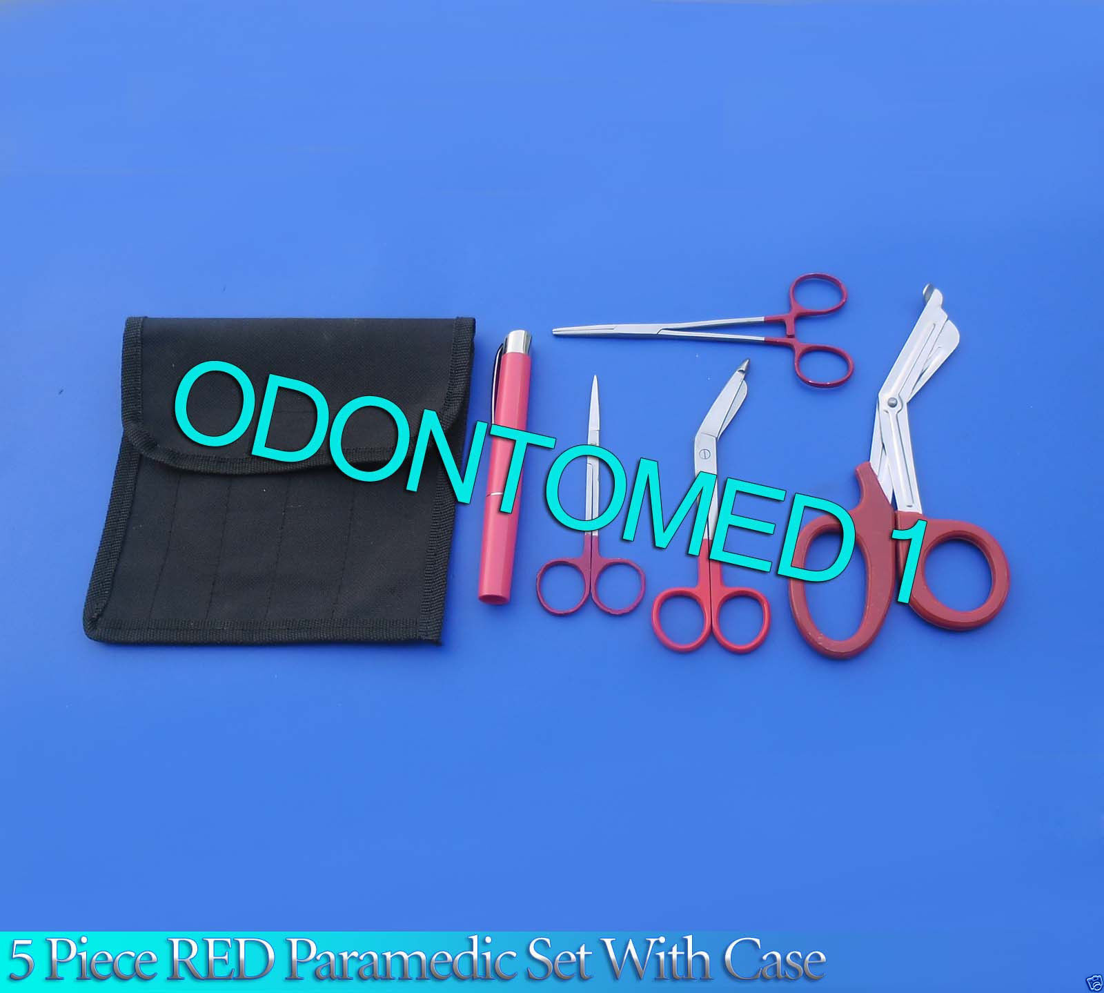5 Piece Red Paramedic Set With Case -Diagnostic Emt Nursing Ems Emergenc