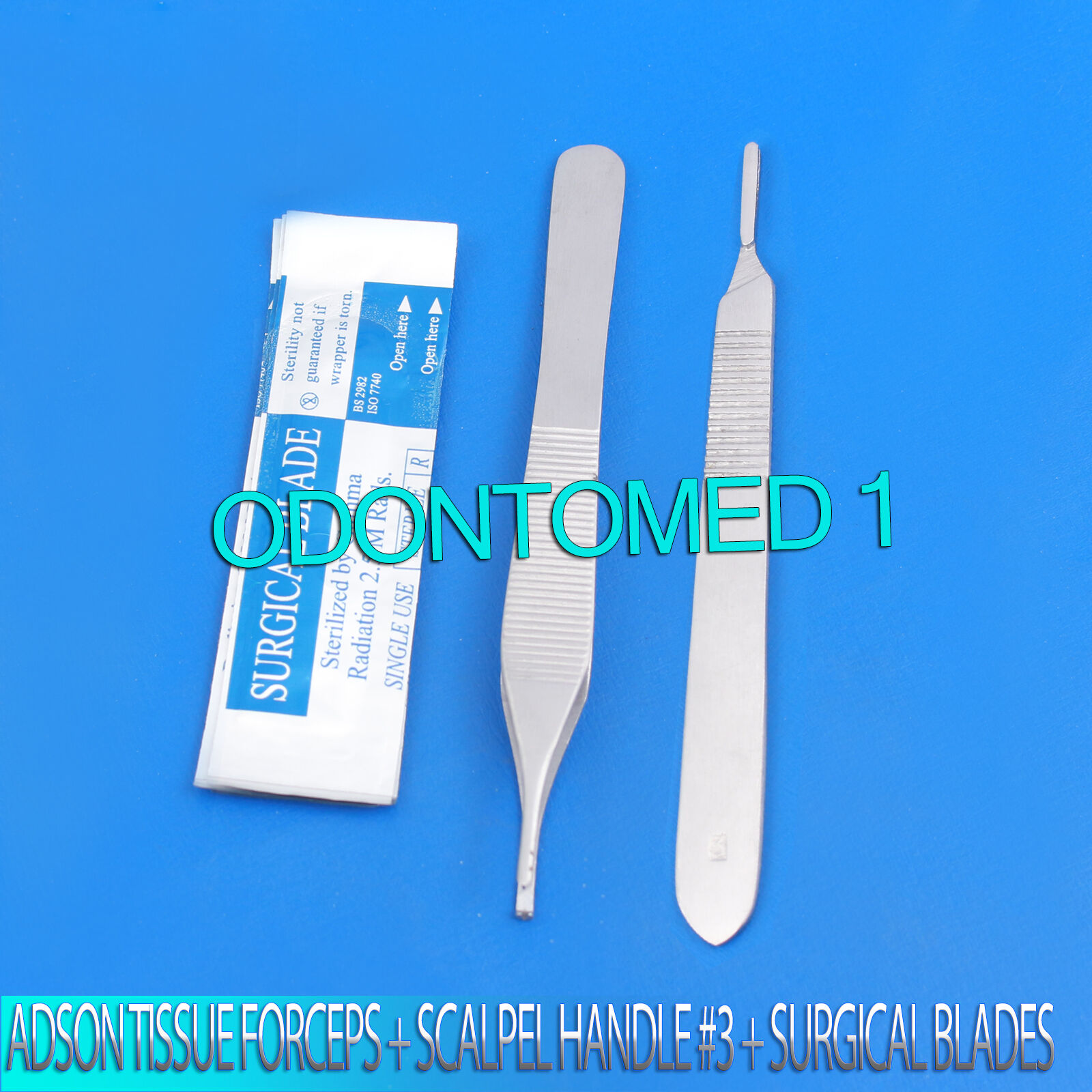 ADSON TISSUE FORCEPS 1X2TEETH 4.75″ + SCALPEL HANDLE #3 + 5 SURGICAL BLADES #12