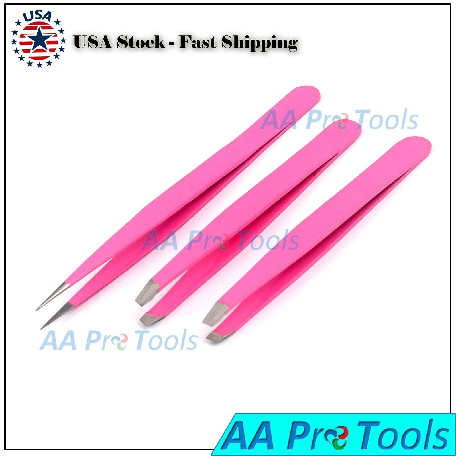 AA Pro: Beauty Eyelash FACIAL HAIR REMOVING Combo Fine Slanted Tip Tweezers Pink 3/Pcs