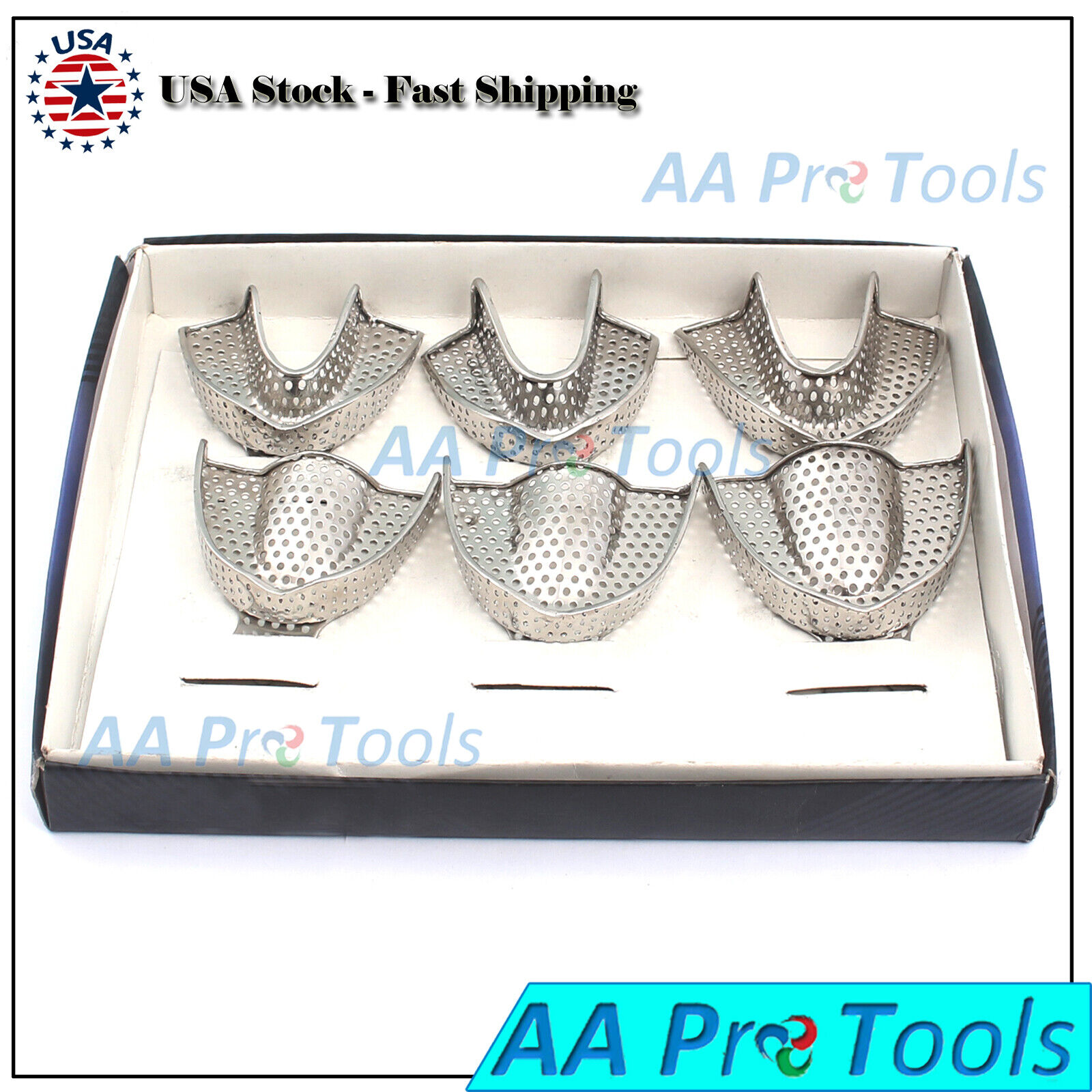 AA Pro: Dental Autoclavable Metal Impression Trays Perforated Stainless Steel S M L 6 Pc