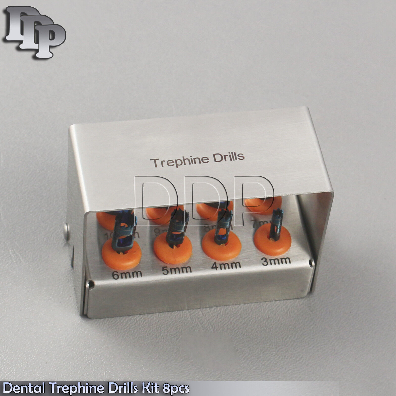 HomeShopDental InstrumentsDental Sets Dental Trephine Drills Kit 8 Pcs Implant Blue Titanium Coated Bur Holder DN-2242