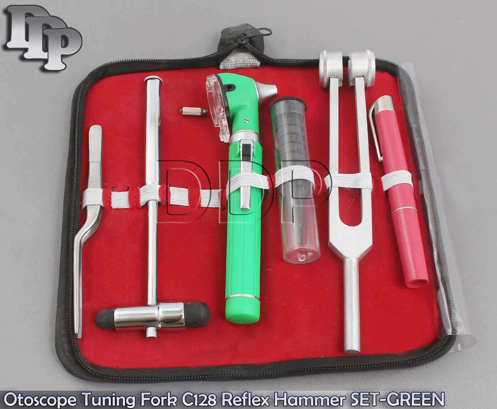 FIBER OPTIC Otoscope Tuning Fork C128 Reflex Hammer Diagnostic SET-GREEN DG-07