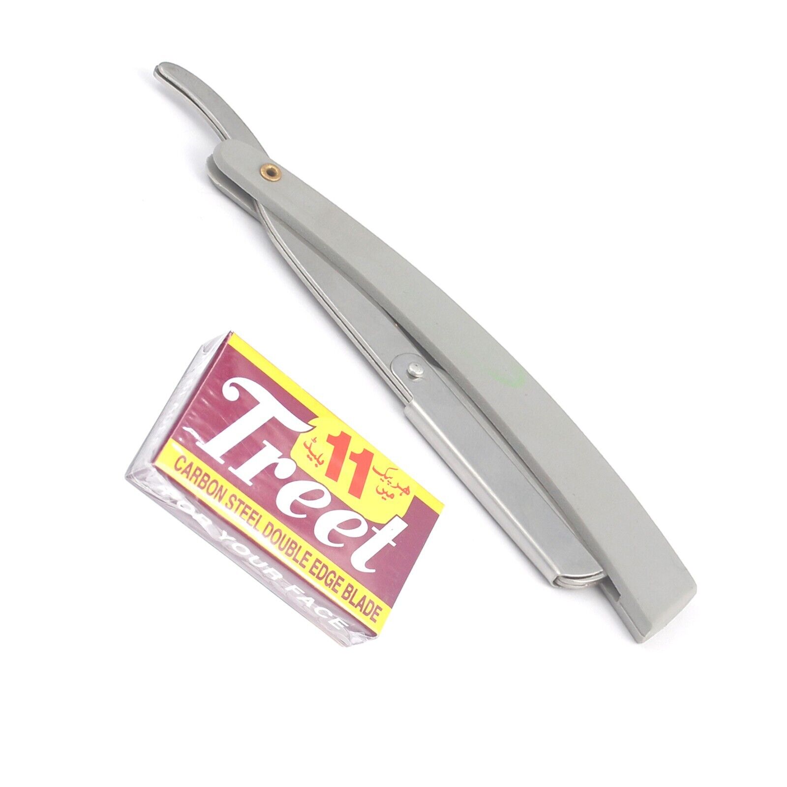 Gray Straight Barber Edge Steel Razor Folding Shaving Knife 11 Blades Razors