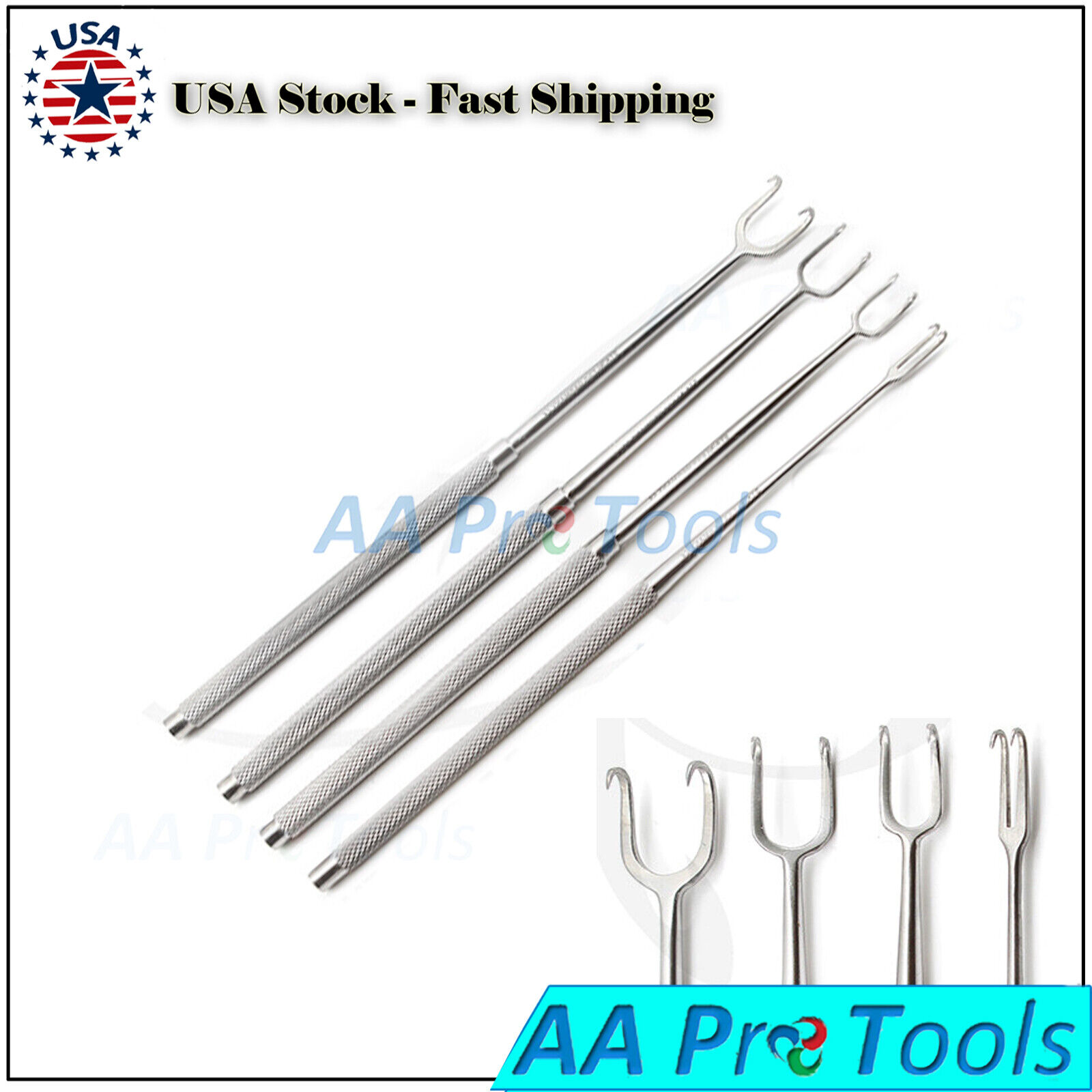 AA Pro: Joseph Skin Hook Set of 4 Pieces Double Sharp Prongs Size 2MM, 5MM, 7MM, 10MM