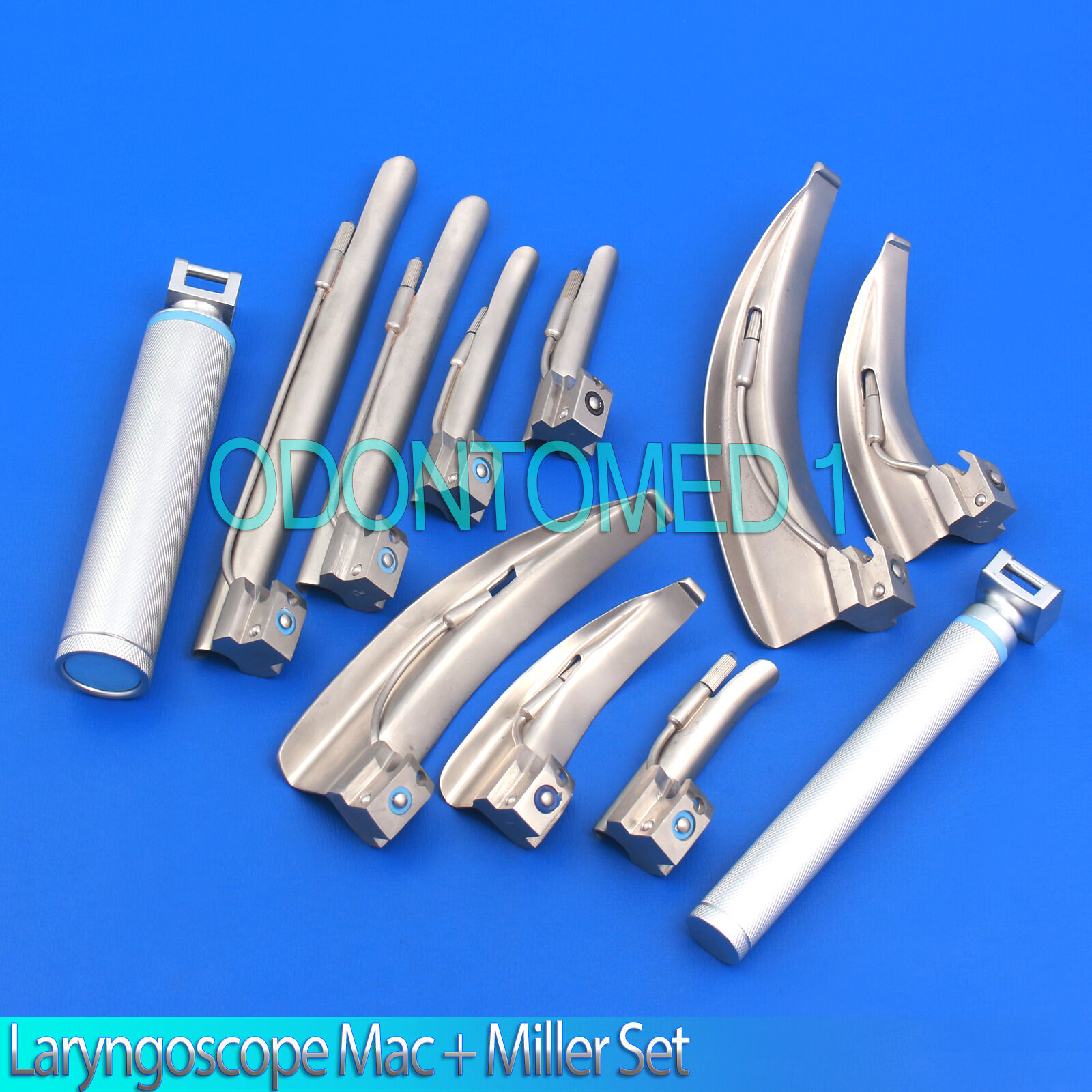 Laryngoscope Mac + Miller Set of 9 BLADES & 2 HANDLES EMT Anesthesia Intubation