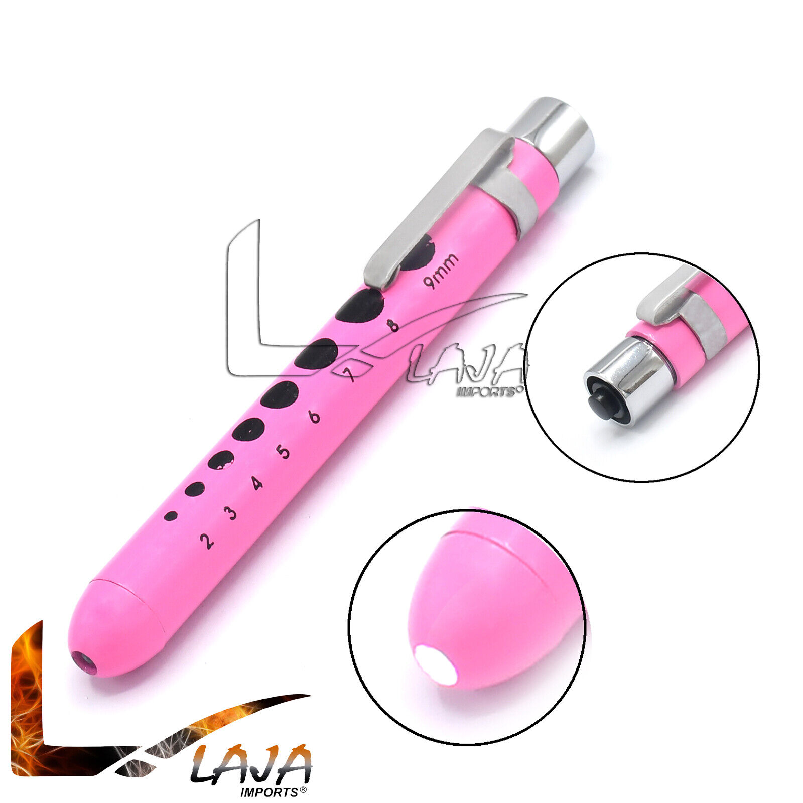 Light Pink Medical Penlight Pupil Gauge Pocket Inspection Torch W/ Clip PL-09