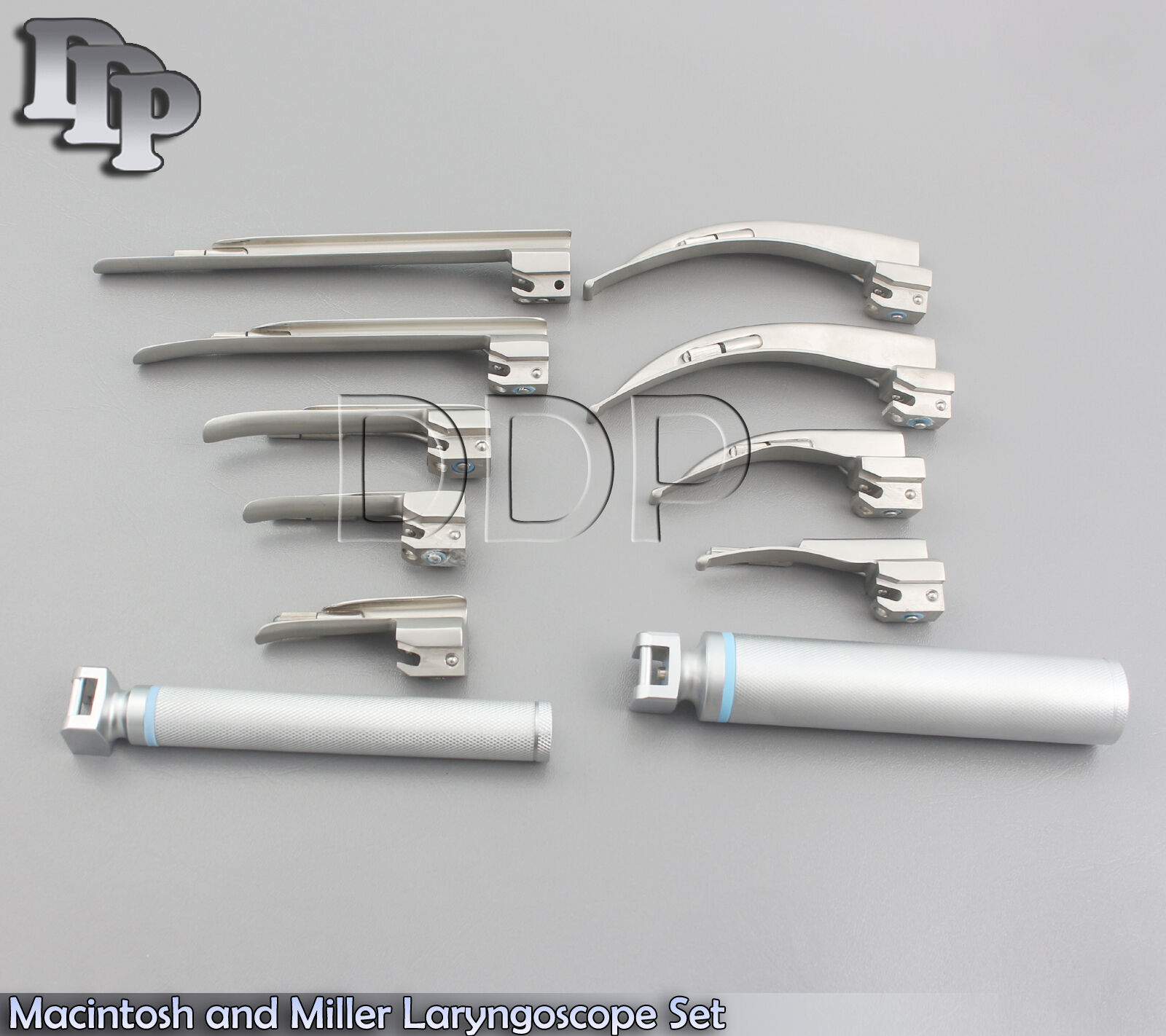 Macintosh and Miller Laryngoscope Set 9 Blades & 2 Handle Surgical Instruments