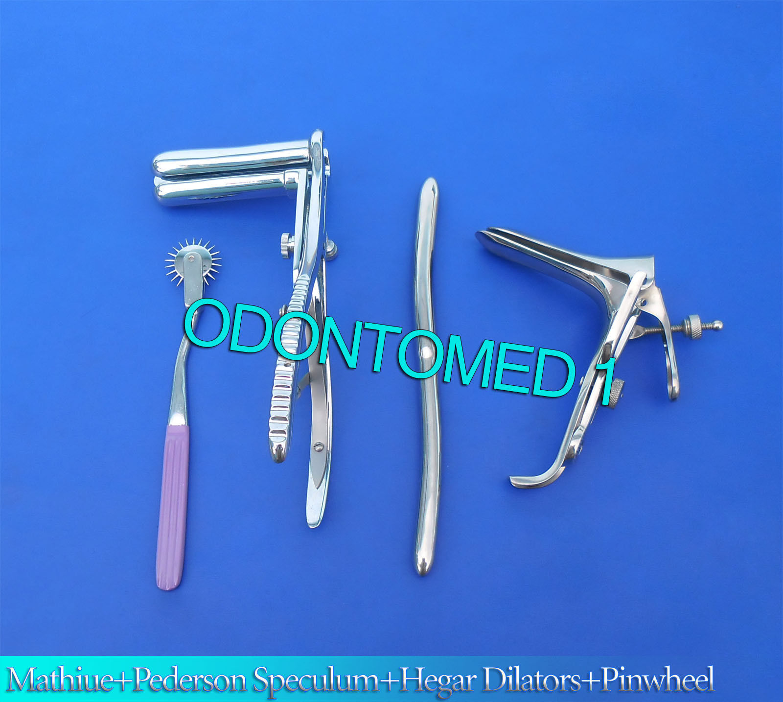 Mathieu Speculum+ Hegar Dilator+ Purple Pinwheel & Pederson Speculum Large