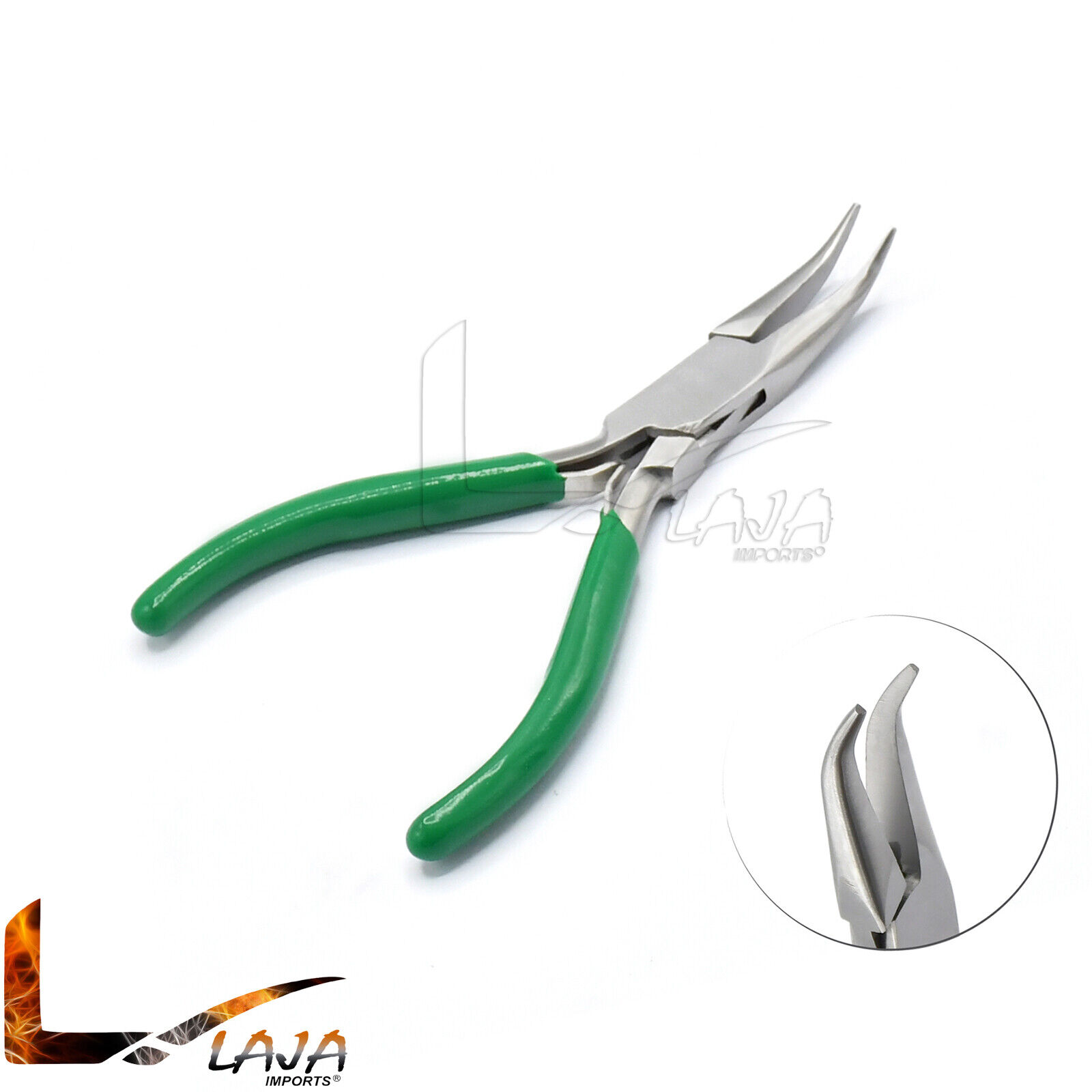 Micro Mini Bent Nose Plier 4.5'' Stainless Steel With Green Rubber Handle