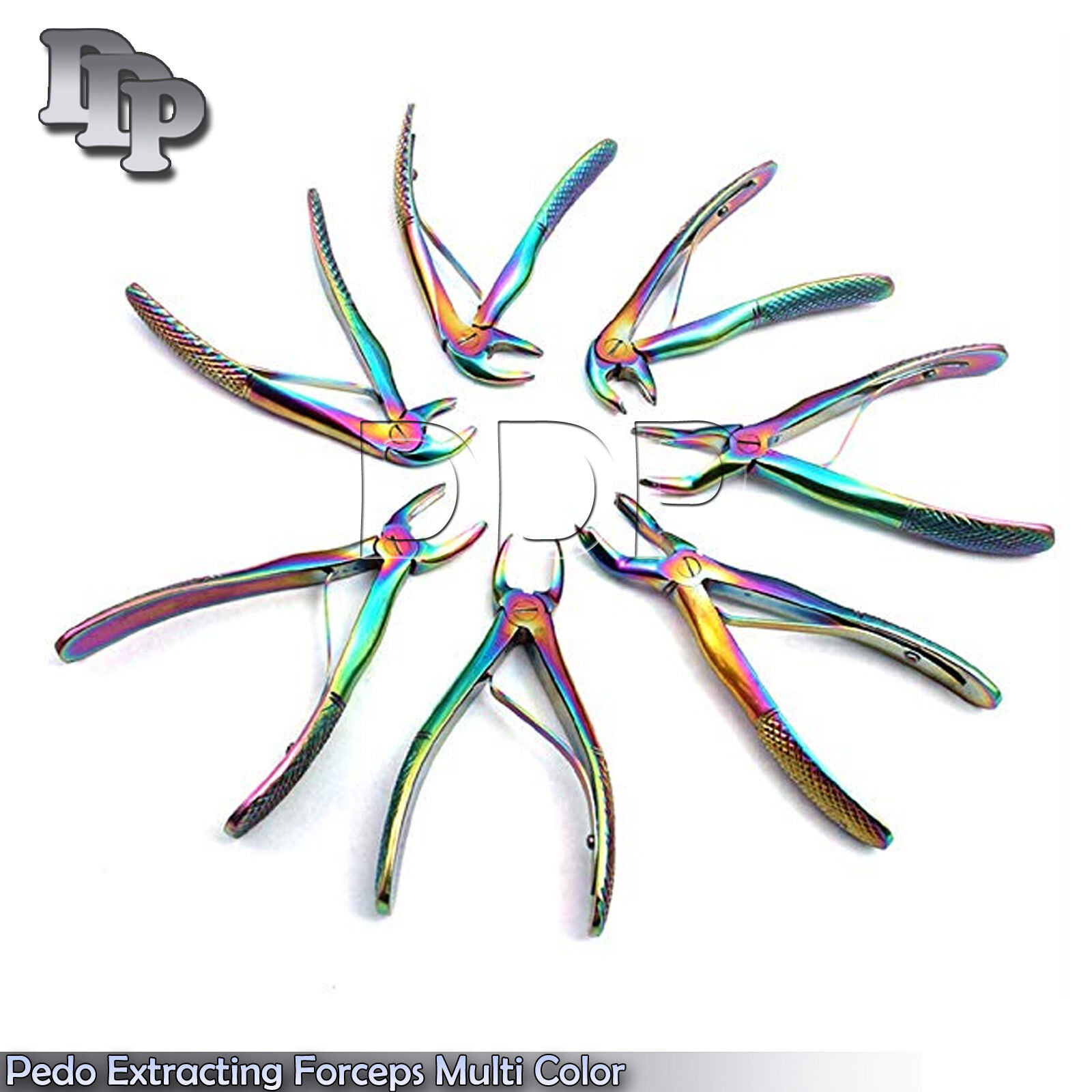GERMAN STAINLESS SET OF 7 EACH  PEDO DENTAL TOOTH EXTRACTING EXTRACTION FORCEPS SATIN FINISH TITANIUM RAINBOW