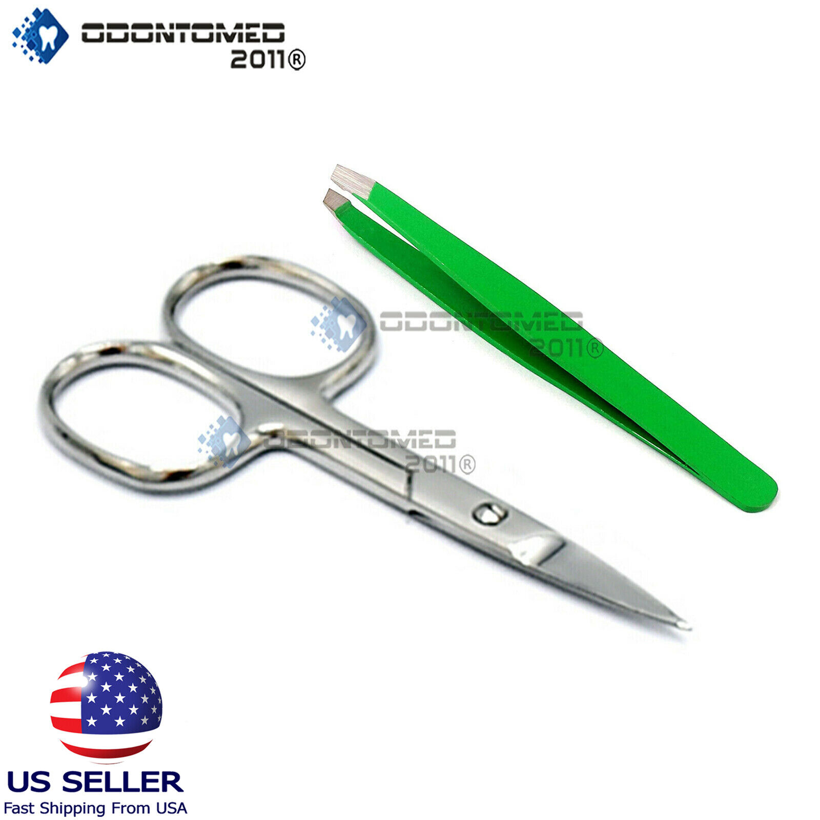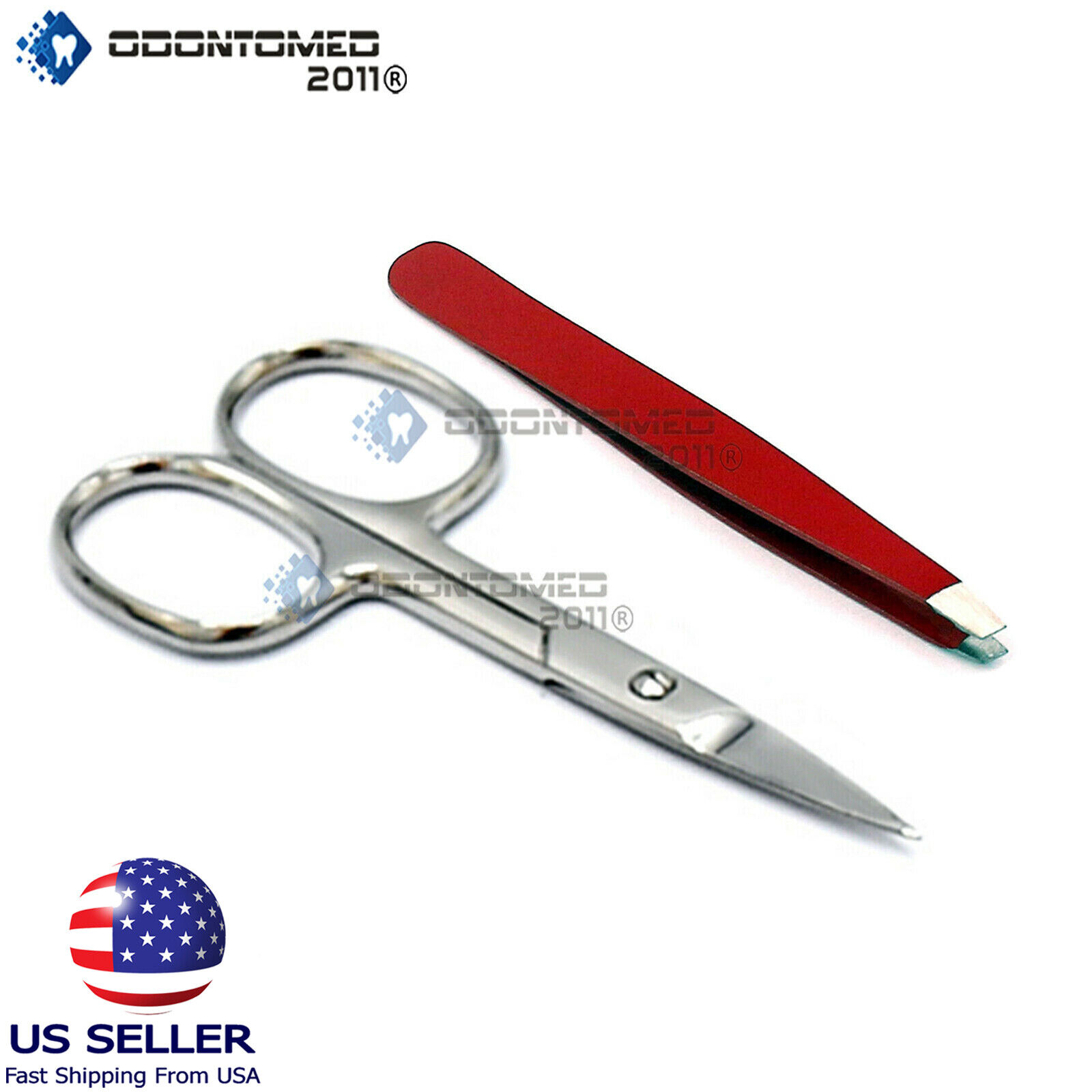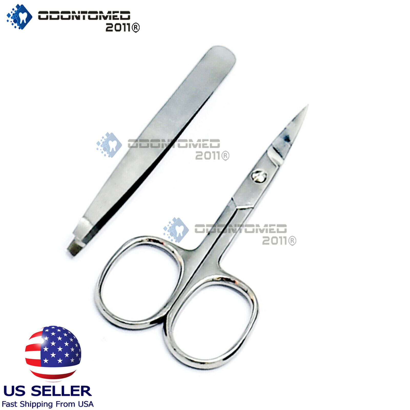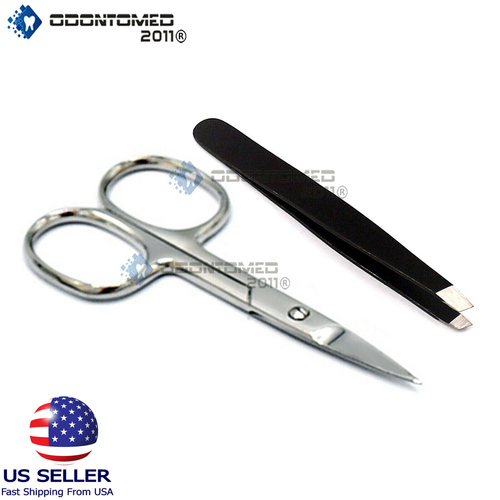 Professional 2pcs Tip Eyebrow Tweezers and scissor Stainless Steel Hair Remover