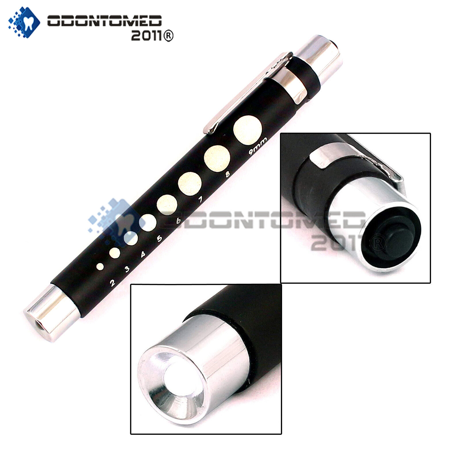 Reusable Led Pupil Gauge Nurse Pen Light Medical Click Penlight Black