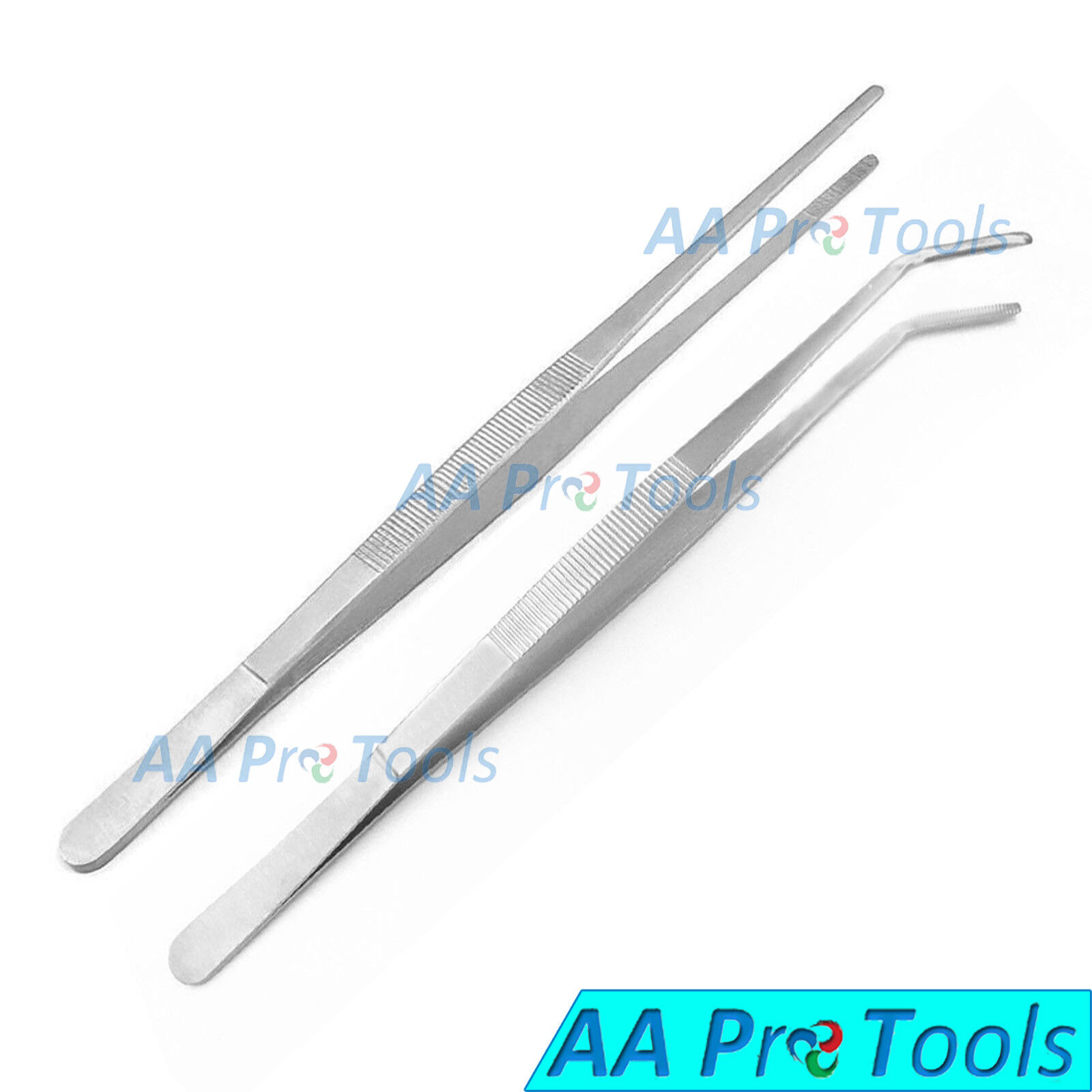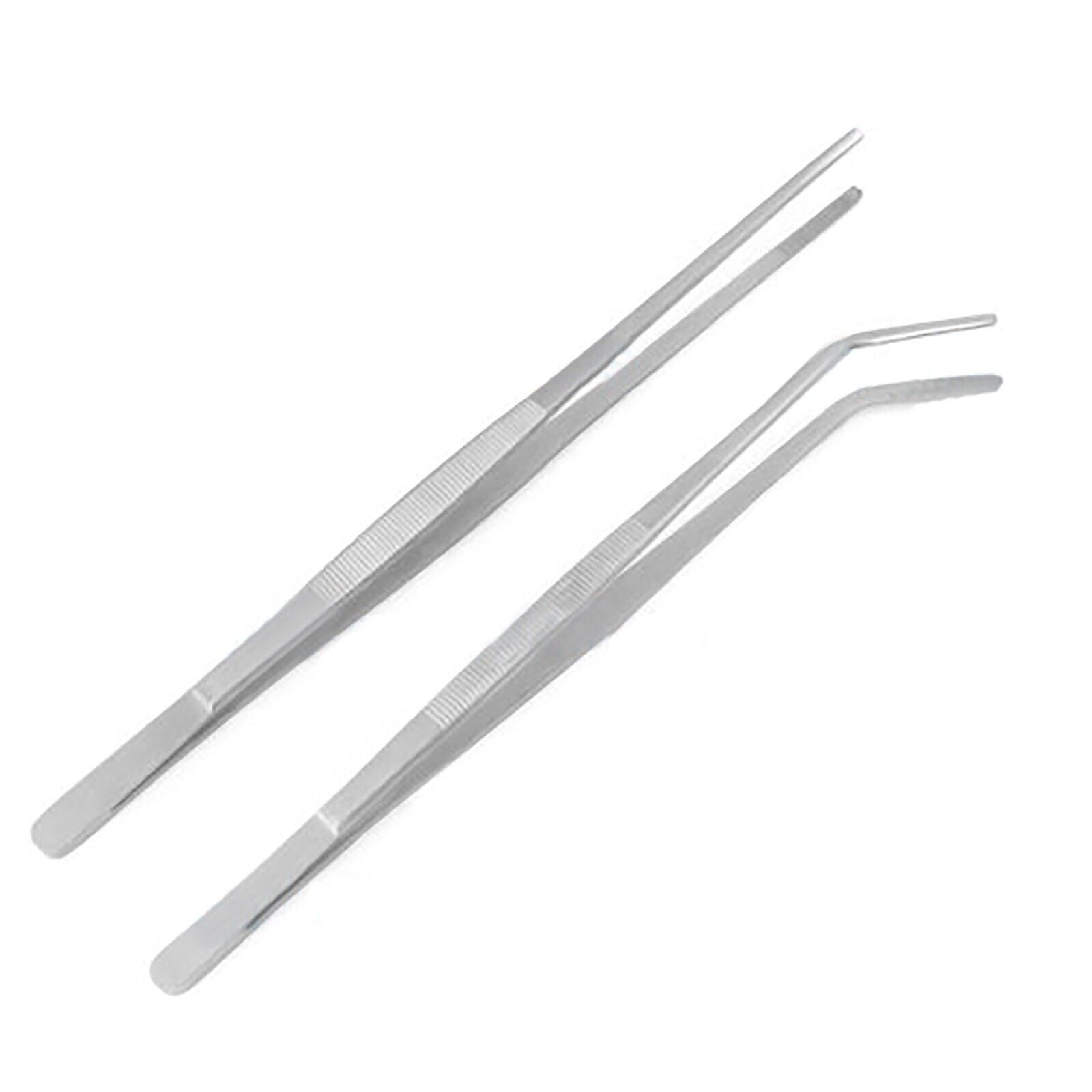 AA Pro: Set of 2 Handy Tweezers 12″ Extra-Long Instruments Forceps Straight & Curved