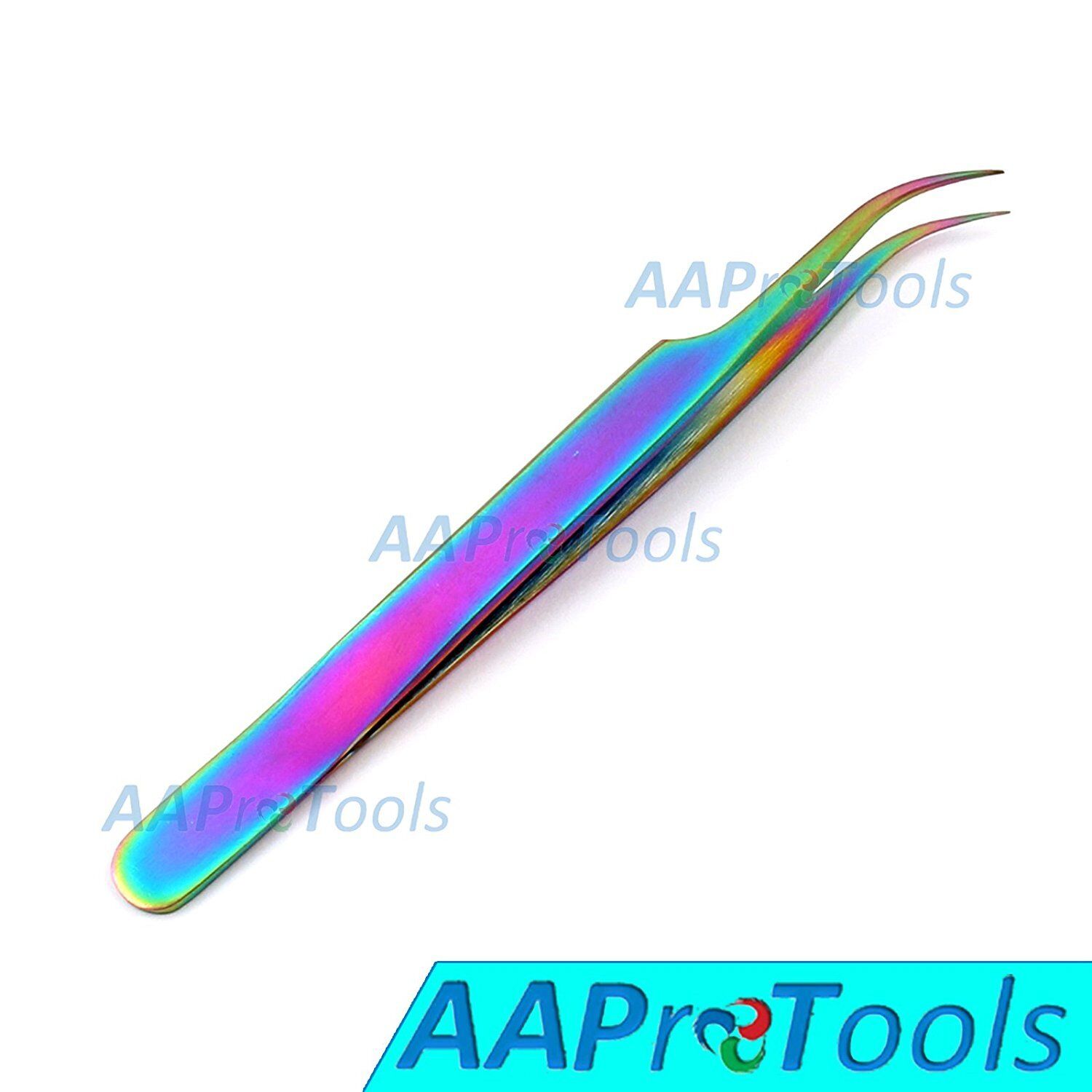 AA Pro: Stainless Steel Multi Rainbow Color 3D Eyelash Extension Tweezers Strong Curved