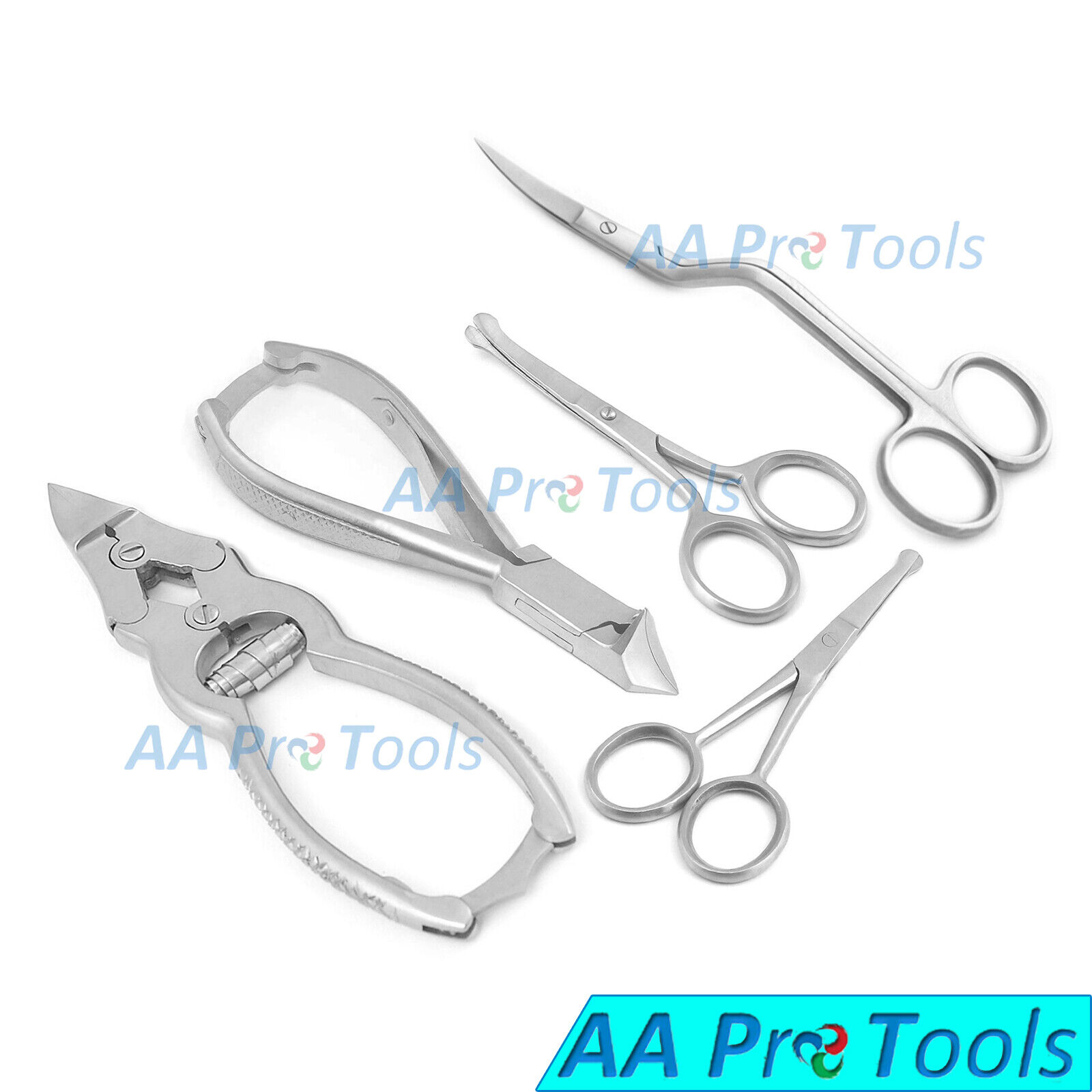 AA Pro: Toe Nail Cutter Clippers Moon, Cantilever, Nail Ball Probe & Bent Scissors 5Pcs
