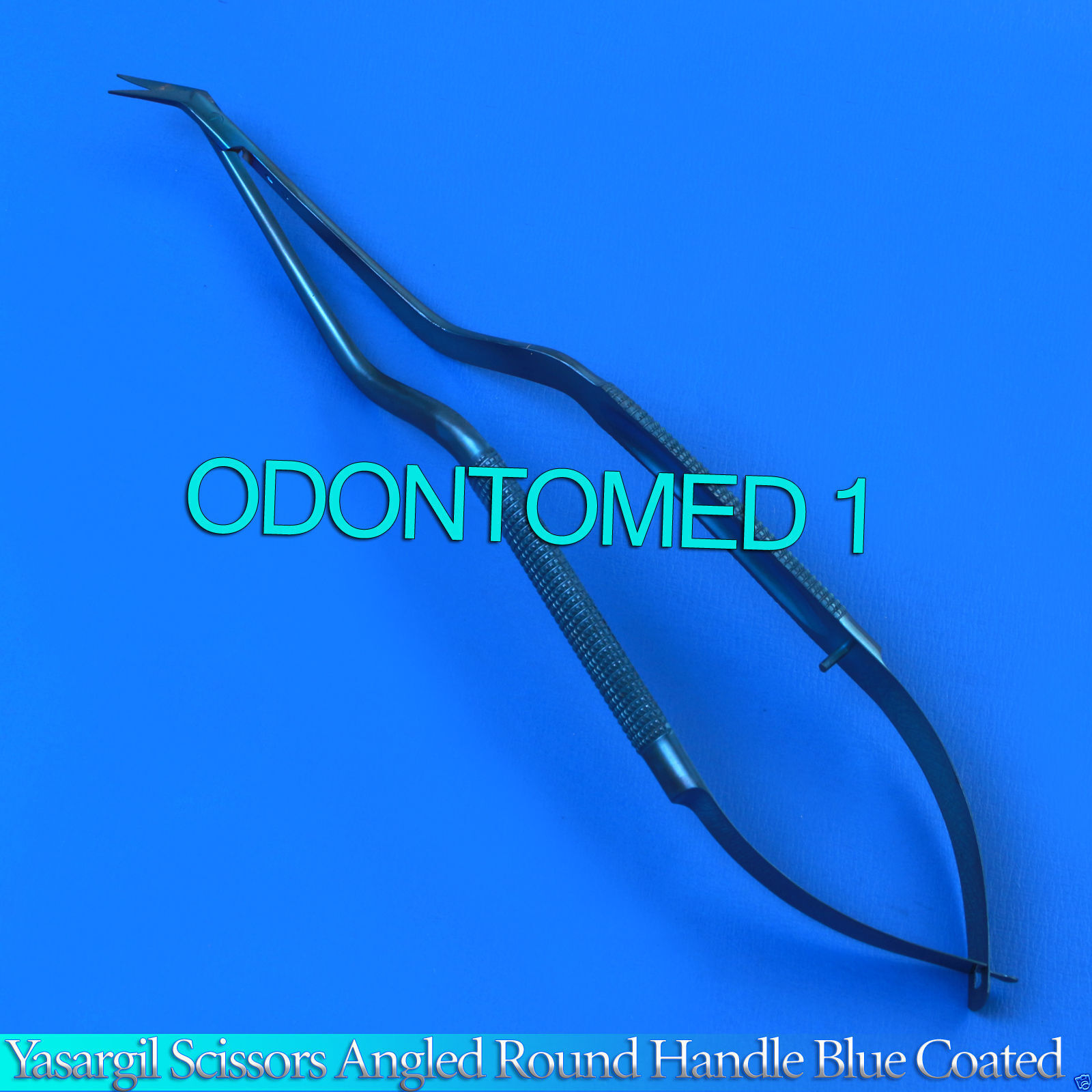 1 Piece Yasargil Scissors Round Handle 8” Blue Coated Angled Surgical Instruments