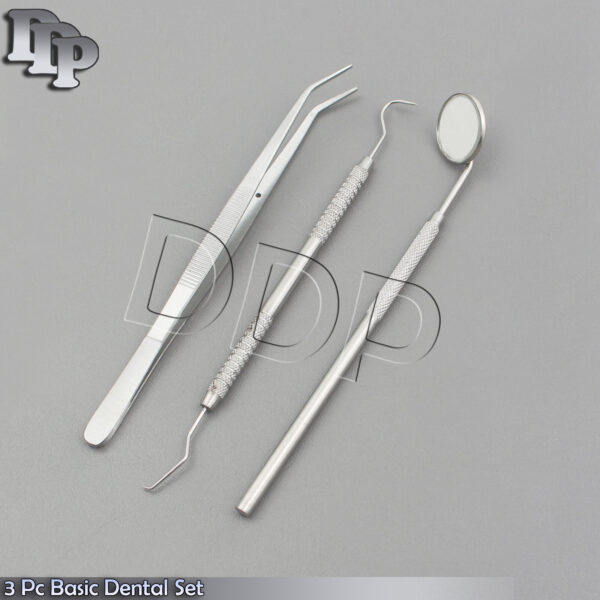 ITEM NAME & DETAILS : 3 Pcs Basic Dental Set Mirror Explorer College plier Item Code: PR-150 Same As Picture