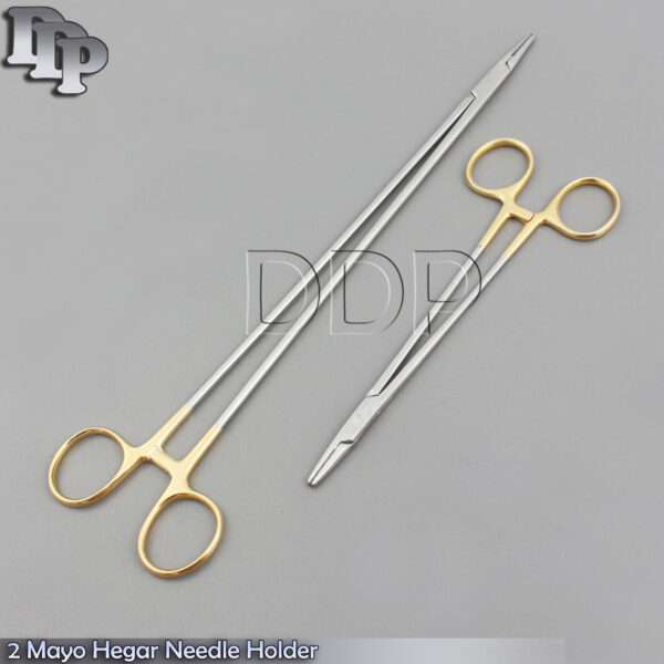 ITEM NAME & DETAILS : 2 MAYO HEGAR SURGICAL NEEDLE HOLDER 12″+6″ SERRATED W/ TUNGSTEN CARBIDE INSERTS BRAND NAME :